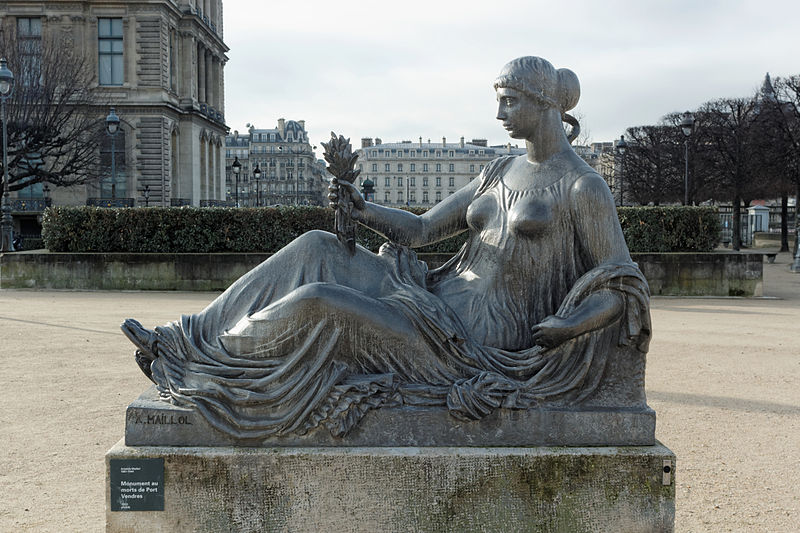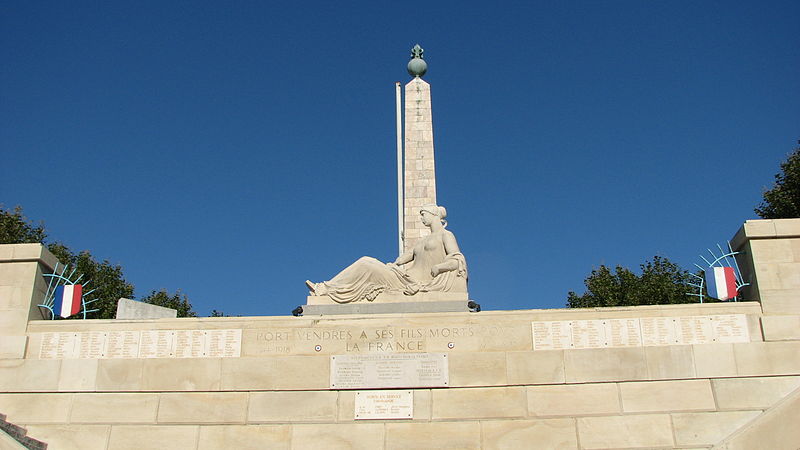 Le monument aux morts de Port-Vendres, œuvre en pierre d'Aristide Maillol, se dresse place de l'Obélisque, face au port ; il a été commandé le 25 mai 1919 et inauguré en 1923. Classé monument historique en 1994, il représente une femme à demi-couchée, le buste relevé et accoudé, tenant de la main droite un rameau — la source évoque tantôt du laurier, tantôt des branches d'olivier — et dont le modèle est Dina Vierny. Maillol s'est inspiré du monument à Cézanne que la ville d'Aix avait commandé en 1912 puis refusé. La statue en pierre a souffert de l'érosion due aux vents marins et d'actes de vandalisme. Une copie en bronze, installée depuis 1964 dans le jardin du Carrousel aux Tuileries à Paris, fait partie d'un ensemble de sculptures de Maillol exposées en plein air. Choqué par la Première Guerre mondiale, Maillol a réalisé gratuitement plusieurs monuments aux morts dans son département natal, dont celui de Port-Vendres. Une plaque commémorative rend hommage au commandant et cryptanalyste Étienne Bazeries ; on peut y lire : « Commandant Etienne BAZERIES cryptanalyste militaire français né à Port-Vendres le 21 août 1846 inventeur du cylindre de BAZERIES reconnu pour avoir cassé les codes allemands pendant la première guerre mondiale. »