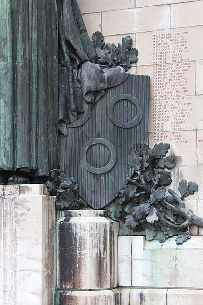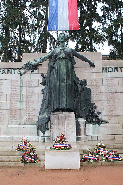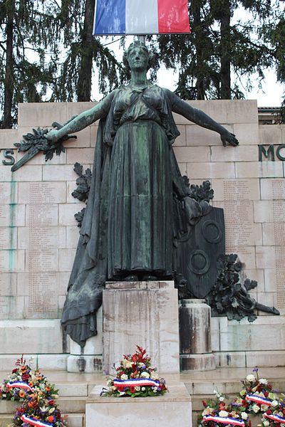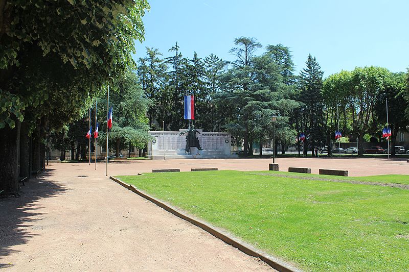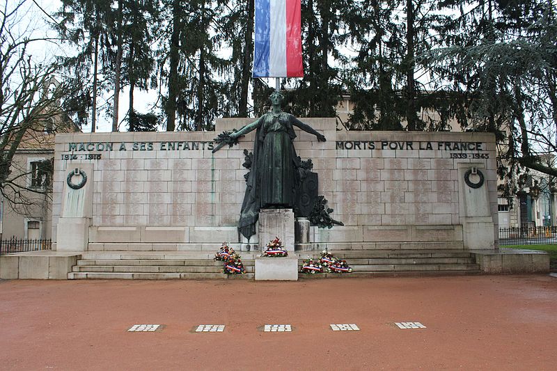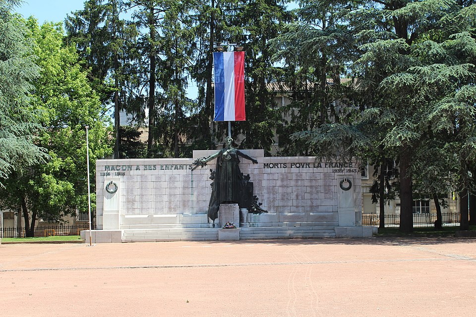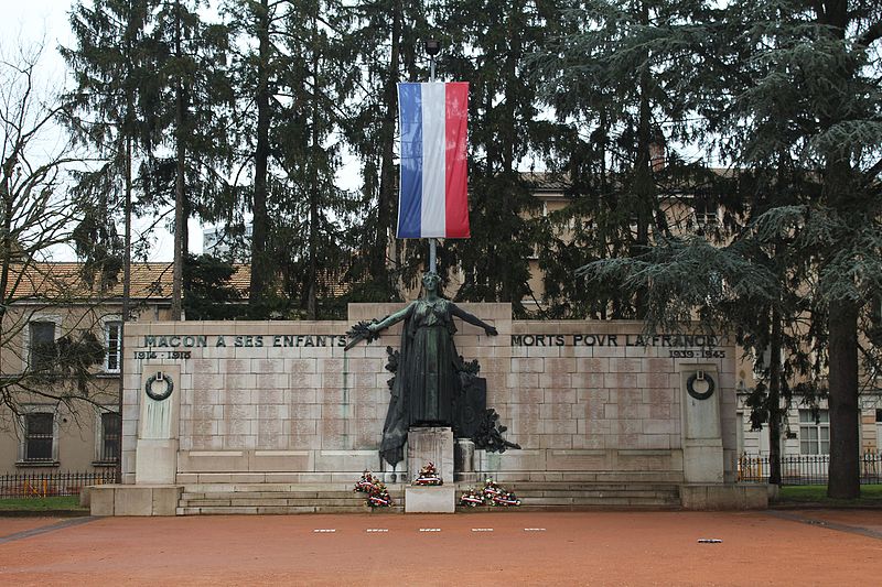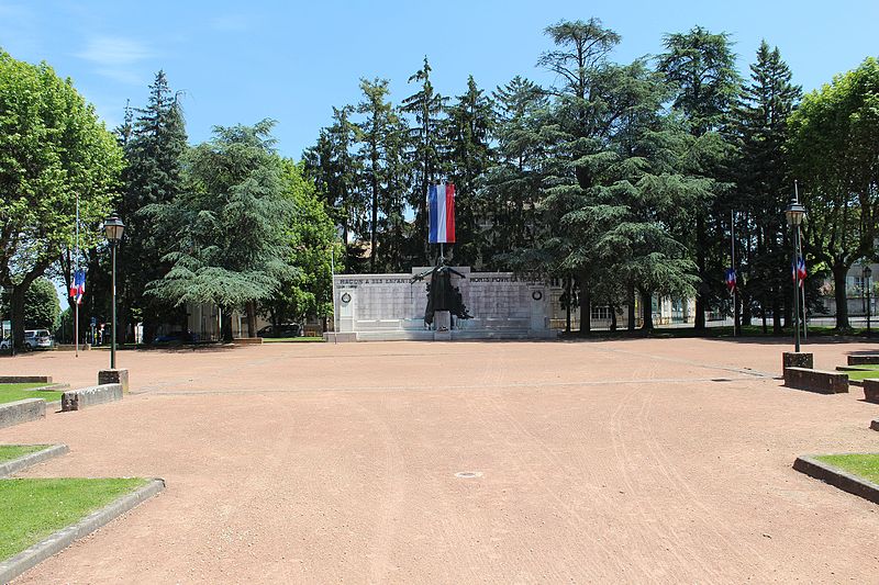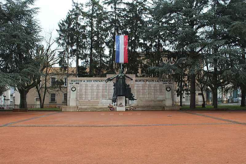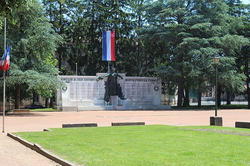Le monument aux morts est situé sur le Square de la Paix à Mâcon, en Saône-et-Loire. Il se compose d'un vaste mur architectural en gros blocs appareillés devant lequel se tient une figure allégorique représentant la ville de Mâcon, les bras écartés, protégeant ses enfants tombés au combat. Drapée à l'antique, elle porte une épée et se tient contre les armes de la ville. Elle tient une branche d'olivier et un rameau de chêne est présent à l'arrière de la statue. Au sommet du monument, l'inscription en lettres métalliques « Mâcon à ses enfants morts pour la France » est apposée. Le monument, ainsi que le square et ses grilles, est inscrit aux monuments historiques depuis le 7 avril 2016. Des médias concernant le monument sont accessibles sur Wikimedia Commons. Il figure dans les listes des monuments historiques de Mâcon et de Saône-et-Loire ainsi que parmi les monuments aux morts de France protégés au titre des monuments historiques. Des informations complémentaires peuvent être consultées sur les portails dédiés aux monuments historiques et à la Saône-et-Loire.