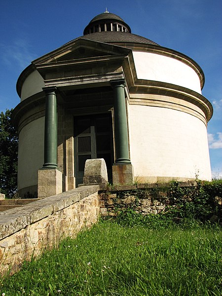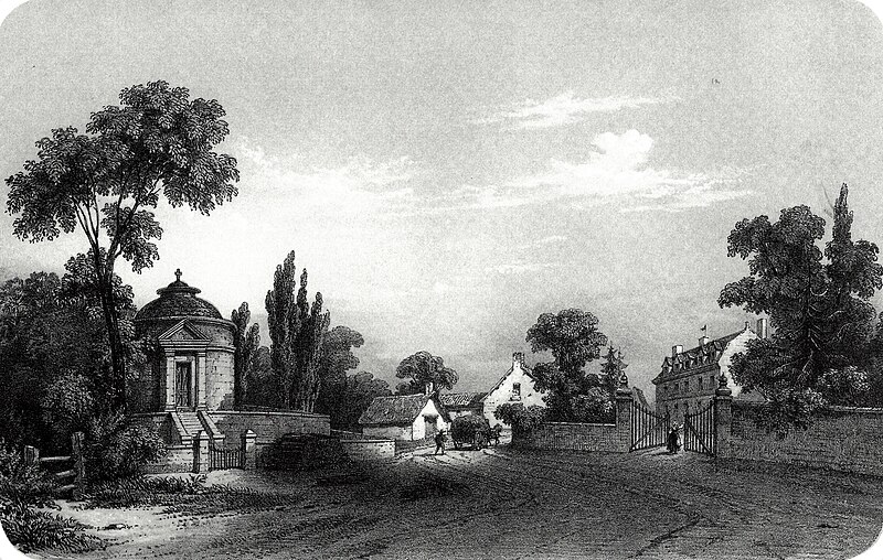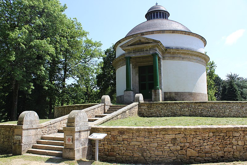 La maison, datée du XVIIIe siècle, est la maison natale de Georges Cadoudal, né en 1771. Entre le plancher du premier étage et la cheminée du rez-de-chaussée se trouve une cachette de Chouans. Le monument commémoratif, situé à Auray (Morbihan, Bretagne), est un mausolée néo‑classique élevé en 1830 par Pierre‑Marie Lussault grâce à une souscription royaliste. Édifié sur les ruines d'un monastère, l'édifice est surélevé et entouré de terre rapportée retenue par un muret. Il présente un plan circulaire et se couvre d'une coupole surmontée d'un lanterneau. À l'intérieur, un retable en bois du XVIIIe siècle, provenant de la chapelle de Gouberville, repose sur un soubassement réalisé en 1905. Le mausolée abrite les restes du général royaliste Georges Cadoudal, exécuté en 1804 sur ordre de Napoléon Bonaparte ; Cadoudal avait voulu renverser Napoléon pour rétablir les Bourbons. L'ensemble constitué par le monument, l'escalier d'accès et les terrasses est classé au titre des monuments historiques par arrêté du 8 mars 1982.
