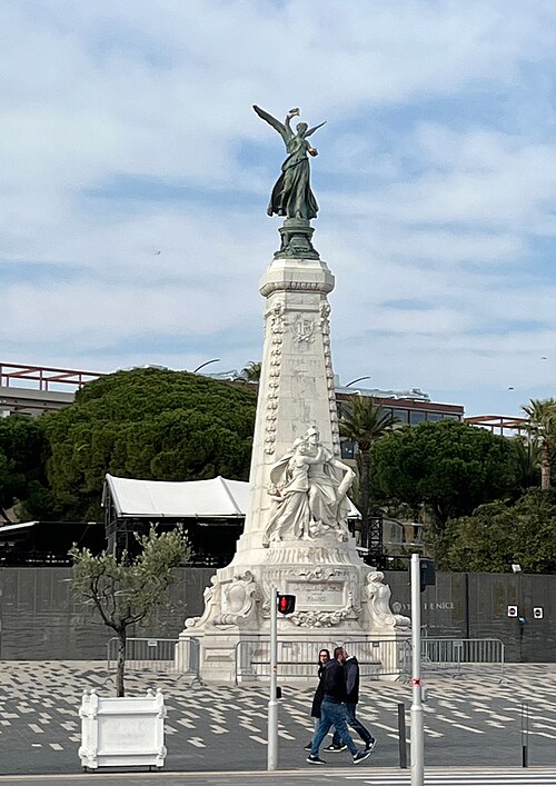 Le Monument du centenaire de la réunion de Nice à la France, situé dans le jardin Albert‑Ier, commémore la première réunion de Nice à la France pendant la période révolutionnaire. Commandé en 1892 pour les fêtes du centenaire de la République, il résulte d’un concours remporté par l’architecte Febvre et le sculpteur André‑Joseph Allar, et a été inauguré le 4 mars 1896. Il a été inscrit aux monuments historiques le 23 juillet 2009.