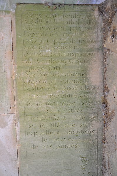 Le monument Mathelat, situé dans le cimetière de Cemboing (Haute-Saône), a été construit après 1846 pour abriter les restes de plusieurs membres de la famille Mathelat. Édifié en pierre de taille dans un style néo‑classique, il serait peut‑être l'œuvre de l'architecte Martin de Jussey. L'édifice a été inscrit au titre des monuments historiques en 1997.