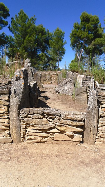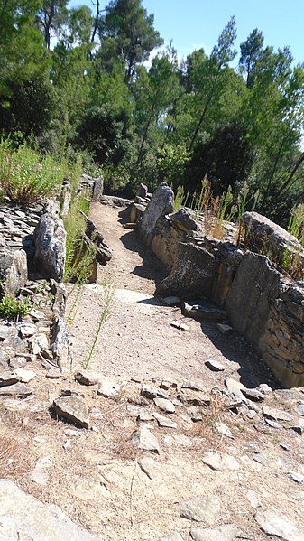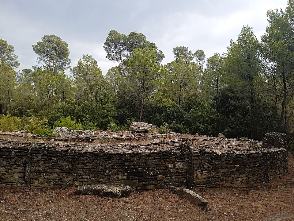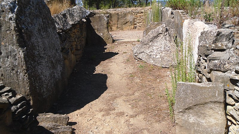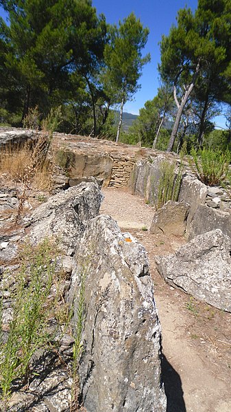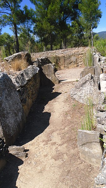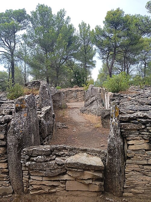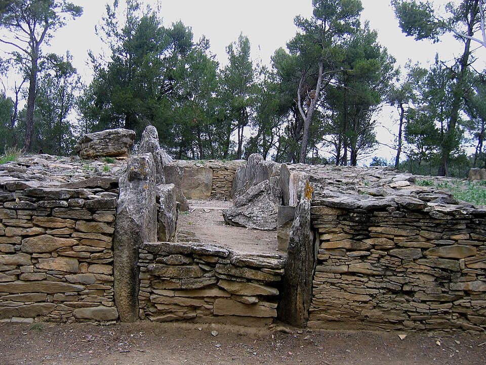 L'allée couverte de Saint-Eugène, souvent qualifiée de grand dolmen à couloir, se trouve sur la commune de Laure-Minervois dans l'Aude. L'édifice a été classé au titre des monuments historiques en 1931 et restauré en 1964 sous la direction de Jean Guilaine. Orientée sud-nord, la construction mesure 16 mètres de long pour 3 mètres de largeur maximale et comprend trois parties distinctes — un couloir, une antichambre et une chambre — l'antichambre et la chambre étant séparées par une dalle-hublot médiane. Le couloir, surélevé d'environ 0,40 m par rapport à l'antichambre, s'étire sur 4 m pour 1,20 m de largeur moyenne ; l'antichambre mesure 5,60 m de long et 2,50 m de large en moyenne en s'élargissant progressivement vers le fond ; la chambre funéraire atteint 5 m de long pour 3,20 m de large. L'ensemble est bordé d'orthostates ; dans le coin nord-est, un orthostate doublé est renforcé par un support dépassant de 0,25 m du sol, tandis que les tables de couverture originelles ont disparu. Jean Guilaine a souligné qu'il s'agit plutôt d'un grand dolmen à couloir présentant un rétrécissement progressif vers l'entrée que d'une allée couverte au sens strict, c'est‑à‑dire d'une structure à largeur constante. Le monument est inscrit dans un tumulus circulaire de 22 m de diamètre, consolidé sur son pourtour par vingt dalles levées. Fouillé par Germain Sicard entre 1924 et 1928, le site a livré des ossements humains attribués à environ trois cents individus ainsi qu'un mobilier funéraire abondant comprenant des objets en cuivre (un petit poignard, deux alènes, trois anneaux), une perle d'or ovoïde, pointes de javelots en silex blanc et en silex ordinaire, lames en obsidienne, nombreuses pointes de flèches barbelées et pédonculées, objets en talc, autant de petites coquilles perforées de type porcelaine, perles en test de cardium, pendeloques, palettes en schiste vert, dents animales (sanglier, bovidés, chevaux, cervidés, petits carnassiers) et de nombreux tessons de poterie incisée. Les travaux dirigés par Jean Guilaine ont complété ces découvertes par cinquante perles en calcaire et en test de coquillage, cinq perles en stéatite, deux pointes de flèches à pédoncule et barbelure, une flèche foliacée et de nombreux tessons céramiques datés du Chalcolithique. L'ensemble du mobilier et des restes osseux est attribué à une phase charnière entre le Chalcolithique et le début de l'âge du Bronze ; le monument montre par ailleurs des indices de violation dès l'époque romaine, notamment des débris d'amphores.
