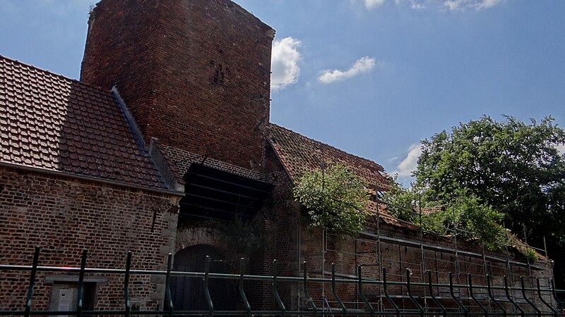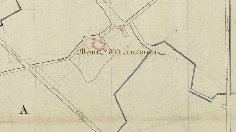 La motte castrale d'Hasencort, dite aussi château d'Hasencort, a donné naissance à la ferme d'Azincourt, à Émerchicourt (Nord). Elle se situe sur la ligne de partage des eaux entre l'Escaut et la Scarpe. Le toponyme Azincourt a été repris pour une compagnie minière, une carrière et une voie ferrée ; il ne doit pas être confondu avec la bataille ou le village d'Azincourt dans le Pas‑de‑Calais. Le site a une histoire ancienne : il est évoqué comme motte féodale ou tertre d'un tombeau gaulois, puis comme emplacement d'un château détruit en 1181 par Baudouin V de Hainaut. Le domaine fut repris au début du XIIIe siècle par Gille Brousse, seigneur de Denain et d'Hasencort. La ferme actuelle porte sur le porche d'entrée un chronographe daté de 1726 ; une distillerie y fut ensuite installée et des souterrains subsisteraient. En 1840, l'établissement entra dans la concession de la Compagnie des mines d'Azincourt ; à proximité subsistent le cavalier d'Azincourt et la carrière d'Azincourt. Le mont d'Azincourt culmine à 70 mètres et sépare les vallées de l'Escaut et de la Scarpe ; le calcaire affleure dans la carrière, au‑dessus de la nappe phréatique. La motte castrale illustre le morcellement du pouvoir médiéval et la diffusion d'un type d'éperon artificiel formé d'un tertre de terre rapportée, tirée du creusement des fossés, surmonté d'une palissade et d'une tour en bois, et accompagné d'une basse‑cour entourée d'un fossé et d'un talus palissadé. Dans le Douaisis, de nombreuses mottes ont été fouillées et ont livré des fossés médiévaux, des chaussées, des enceintes maçonnées, des donjons, des caves voûtées, des silos, des celliers et des vestiges d'installations agricoles couvrant la période du haut Moyen Âge au bas Moyen Âge. La ferme d'Azincourt s'est installée en 1726 au sommet d'un plateau calcaire ; près d'elle se trouve le mont d'Azincourt, tertre d'environ deux cents pieds de diamètre au sommet et de douze cents pieds de circonférence à la base, entouré de fossés encore bien marqués à l'ouest et parfois en eau. On a signalé sur ce tertre une tour ou des débris d'un château fort ; des fouilles ont révélé de la maçonnerie intérieure et ont laissé envisager l'hypothèse d'un tumulus gaulois. Un récit relate qu'en 1181 Gérard, prévôt de Douai et seigneur d'Émerchicourt, blessa gravement son cousin Berniers, seigneur de Roucourt ; pour le punir, Baudouin V de Hainaut fit incendier ses biens et raser le manoir seigneurial. Après d'autres violences impliquant le neveu du prévôt, Baudouin V incendia encore le village de Rœulx et détruisit les biens des parents du prévôt. Au début du XIIIe siècle, Gille Brouche (ou Broisse), seigneur d'Hasencort, occupait les lieux et vendit des cens et des terres à diverses reprises, notamment à des religieuses et à plusieurs seigneurs locaux selon des chartes conservées. Les armoiries de la terre étaient d'argent à l'aigle éployée de gueules, membrée et becquée d'azur ; le lieu s'écrivait autrefois Hasencourt ou Hasencort. Les bâtiments de la ferme datent approximativement de 1726 et, d'après les différents cadastres, ont peu évolué jusqu'à nos jours. En 1830 on rapporte que la butte et la ferme étaient autrefois accompagnées d'une église et d'un petit village ruinés pendant les guerres de Louis XIV, ce qui avait entraîné l'annexion de la paroisse au territoire d'Émerchicourt. En 1861, Hary d'Oisy‑le‑Verger exploitait la ferme sur 120 hectares et y fit fonctionner une distillerie agricole capable de traiter environ 20 000 kilogrammes de racines en vingt‑quatre heures ; il améliora les sols avec des cendres et de la chaux et répara les chemins en étalant des pierres. Les bâtiments étaient alors en ruine ; le comte de Moutiers, propriétaire, finança des travaux et le drainage, tandis que la culture de betteraves et de pommes de terre permit d'éradiquer le chiendent qui envahissait les terres négligées. De 1940 à 1968 la ferme appartint à Alfred Locquet et son épouse, qui en exploitaient 200 hectares, puis elle fut rachetée par Étienne Van De Weghe ; elle passa ensuite aux époux Bougaut qui y supprimèrent l'activité agricole pour créer les Haras d'Azincourt, activité réduite ensuite jusqu'à l'inoccupation après 1985. Le 21 juin 1997 fut déclarée l'association La Ferme d'Azincourt, dont l'objet porte sur la réinsertion, la formation, les actions sociales et culturelles et l'organisation de manifestations favorisant ces objectifs. En 2003 la communauté de communes Cœur d'Ostrevent acheta la ferme 130 000 € puis la revendit 50 000 € en 2012 ; un appel à projets de 2004 visait l'étude de faisabilité d'un développement touristique et culturel associant un centre de ressources sur les pratiques artisanales, un centre d'interprétation de la motte et des capacités de restauration et d'hébergement. En 2012, le projet privé retenu par la commune prévoyait l'installation d'une fauconnerie sur le site.