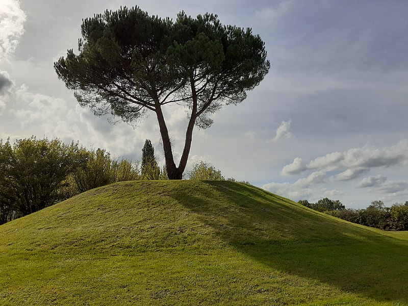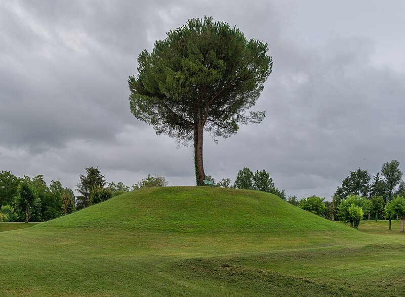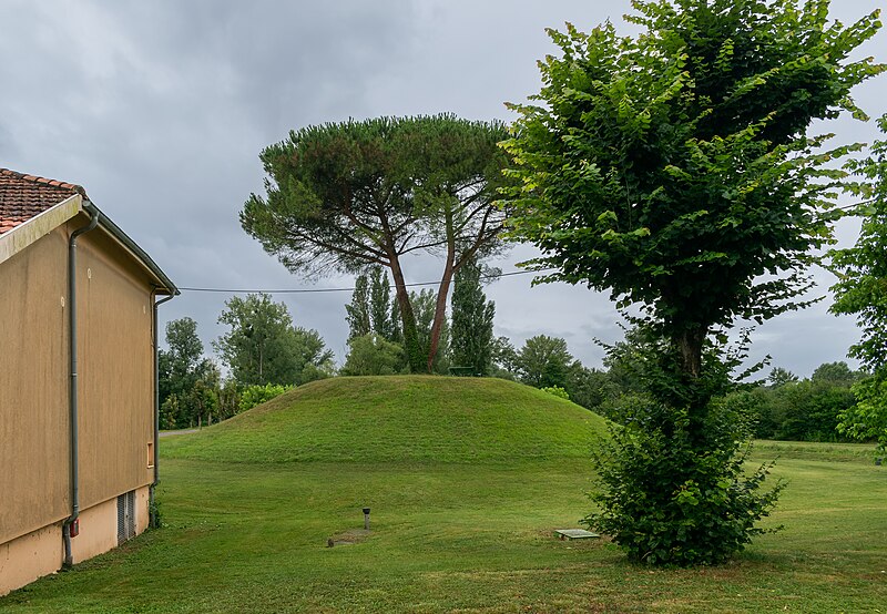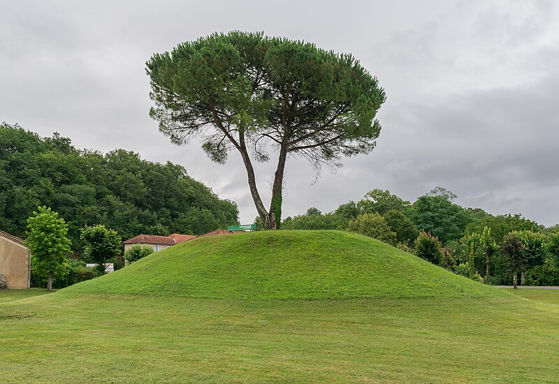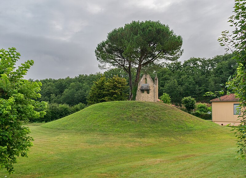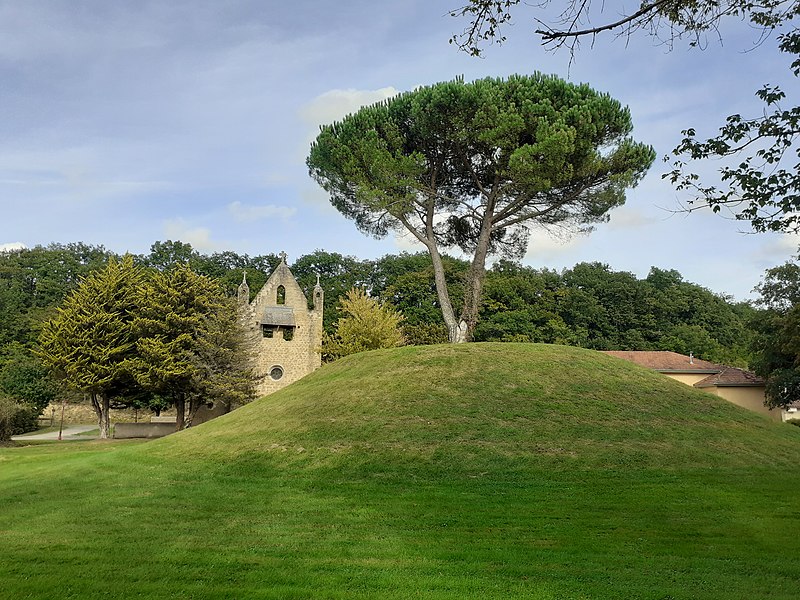 Dans le Gers, il est courant qu'une église rurale soit bâtie à proximité d'une motte féodale. Des vestiges de murs à l'est et au nord laissent encore apparaître des éléments romans de l'édifice, qui paraît avoir été voûté en berceau. L'une des chapelles daterait de 1665. Selon les croyances locales, la motte renfermerait la tombe d'un chef gaulois, enseveli avec un trésor en pièces d'or.