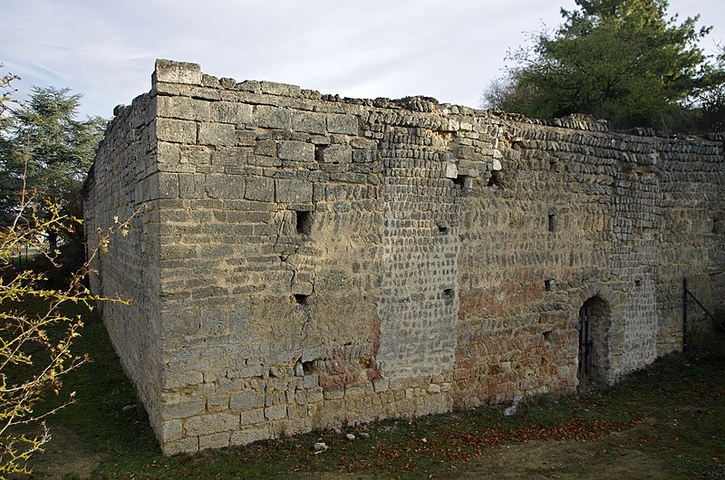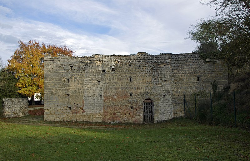 La motte féodale et les vestiges du donjon de Doué-la-Fontaine, sur la commune déléguée de Doué-la-Fontaine (Doué-en-Anjou, Maine-et-Loire), témoignent de la transformation d'une aula carolingienne en fortification en pierre. Le site est classé au titre des monuments historiques par arrêté du 19 décembre 1973. Les restes se situent au sud de la commune, à l'angle du boulevard du docteur Lionet et de l'impasse de la Motte, à moins de 100 mètres de la route départementale 69. Le développement du site remonte à l'époque mérovingienne, marquée par l'extraction souterraine de sarcophages. À la fin du VIIIe et au IXe siècle, les rois carolingiens puis les rois d'Aquitaine disposaient à Doué d'une résidence, mentionnée dans les textes comme villa ou palatium, et le prince Louis, roi d'Aquitaine, en fit l'une de ses quatre résidences préférées. Vers 900 fut édifiée sur le site une aula carolingienne de 23 × 17 mètres aux murs épais de 1,7 à 1,8 mètre. Un incendie, vers 930-950, détruisit la charpente ; les ouvertures furent alors murées, les murs badigeonnés de chaux et l'édifice surélevé pour créer un étage, tandis que le rez-de-chaussée devint un cellier aveugle accessible depuis l'étage, à cinq mètres au-dessus du sol, par un perron en charpente. Cette transformation fit de l'aula une tour maîtresse fortifiée, faisant de Doué-la-Fontaine l'un des plus anciens châteaux en pierre connus. Au début du XIe siècle, la partie basse du bâtiment fut « emmottée » : des terres rapportées masquèrent les parois extérieures du rez-de-chaussée pour prévenir la sape, transformant l'aula enterrée en motte castrale surmontée d'une fortification en bois et entourée d'un fossé profond de cinq mètres et large d'environ quinze mètres. De la tour détruite au XIe siècle subsiste aujourd'hui essentiellement la portion emmottée, c’est‑à‑dire l'aula carolingienne initiale, et sur le sommet de ses murs les premières arases de la surélévation des années 950. Des fouilles menées de 1967 pendant trois années par Michel de Boüard, opération considérée comme fondatrice de l'archéologie médiévale, ont mis au jour notamment les murs d'une cuisine recouverts d'un enduit portant des graffitis représentant des personnages, des animaux et des scènes religieuses telles que la Vierge à l'Enfant et la Crucifixion; la pièce qui servait de cuisine avant l'incendie a manifestement changé de destination. Le premier bâtiment castral était donc une grande salle d'un seul niveau, résidence d'un comte d'Anjou, construite et dallée en pierre à la fin de l'époque carolingienne. Les murs, composés de pierres de tailles très disparates, présentent une épaisseur comprise entre 1,72 et 1,8 mètre. Un mur intérieur divisait l'aula en deux espaces : la partie nord, d'environ 178 m², avec dallage en pierre et foyer, et la partie sud, d'environ 72 m², pourvue d'une cheminée et interprétée comme une cuisine d'après les restes mis au jour. Deux portes existaient, dont une principale à l'ouest haute de trois mètres et une plus petite sur la façade sud, et des trous de boulin encadraient les accès. Sous l'aula, la fouille du puits a révélé une petite carrière souterraine, située à 7–12 mètres de profondeur et couvrant 120 à 150 m², antérieure à l'aula et creusée d'abord pour extraire des sarcophages, dont des fragments subsistent encore; cette carrière servit ensuite de carrière de pierre pour la construction puis la surélévation de l'aula. Lors de la transformation en château, un couloir descendant et un escalier furent creusés pour relier le cellier du rez-de-chaussée à la carrière, qui devint ainsi une cave annexe. Par sa conversion d'aula carolingienne en donjon médiéval, Doué se range parmi les premiers châteaux de pierre, avec Langeais. La motte dite de la Chapelle avait à l'origine une forme tronconique, haute d'environ sept mètres, avec un diamètre à la base d'environ cent mètres et de quarante-deux mètres au sommet.