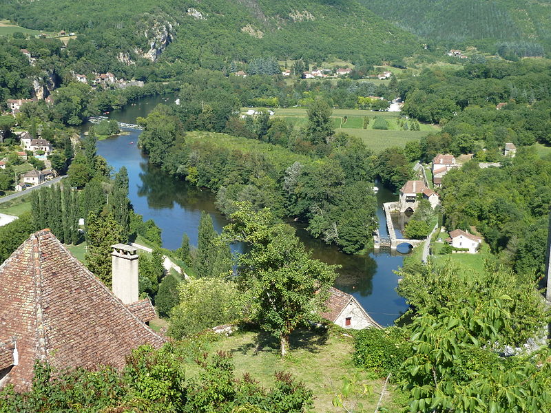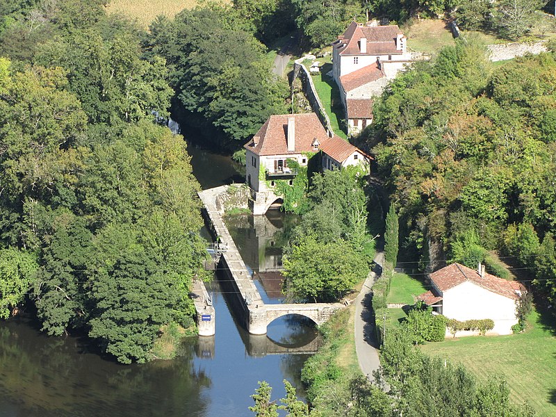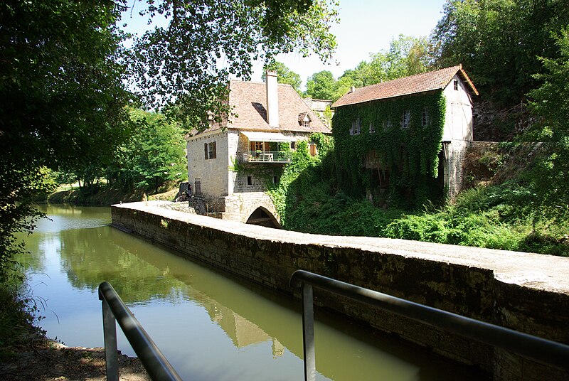 Le moulin à eau de Saint-Cirq-Lapopie (Lot) est attesté depuis 1317, lorsque Sobirana de Gourdon afferme le moulin dit de Lona au meunier Bertrand Reyné. Il conserve d'importants vestiges du XVe siècle dans la chambre à eau et la chambre supérieure, et les coseigneurs de Saint-Cirq le remettent en bail en 1474 à Bertrand Delport. Le moulin a fait l'objet d'une restauration au début du XVIIIe siècle ; en 1727 le bâtiment est néanmoins signalé en ruines, et l'étage d'habitation a été reconstruit avant la remise en exploitation. Une écluse a été accolée au moulin au XIXe siècle. Au sol, une dizaine de meules et des galets formaient le pavement de la salle du rez-de-chaussée, et plusieurs couples de meules ont assuré son activité jusqu'au XXe siècle. En 1927 trois paires de meules fonctionnaient encore et une quatrième entraînait une fabrique voisine de robinets en bois ; la même année une paire a été remplacée par un engrenage avec renvoi d'angle pour actionner à l'étage un broyeur Lafon et un convertisseur double Bulher. En 1932, cet aménagement a été complété par d'autres équipements mécaniques, puis en 1956 le moulin a été transformé en minoterie hydraulique : les blutters de l'étage de comble ont été remplacés par un plansichter Cesbron, une brosse à blé et une brosse à son Lafon, et l'ancien matériel d'étage par trois machines à cylindres Bulher. Un moteur diesel d'appoint de 15 ch a été installé à l'entrée pour compenser la perte de puissance en période de hautes eaux, tandis que deux paires de meules continuaient à broyer des céréales pour le bétail. L'exploitation a cessé en 1966 ; il ne subsiste aujourd'hui que les cuves, deux paires de meules, quelques engrenages et poulies ainsi qu'un système de cinq volants à crémaillère commandant les vannes. Une paire de meules, restaurée en 1999, sert encore pour des démonstrations de mouture lors de la journée nationale des moulins. L'édifice a été inscrit au titre des monuments historiques le 17 septembre 1973 et a été transformé en maison d'habitation.
