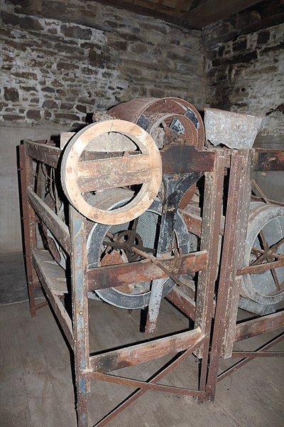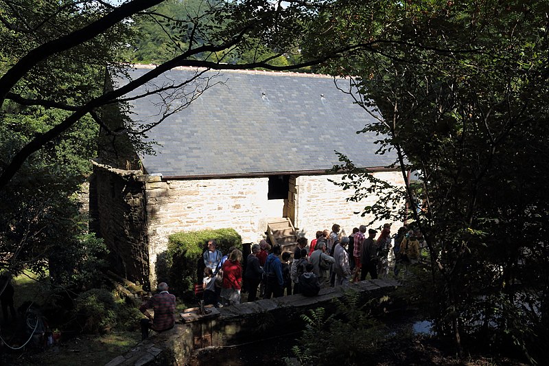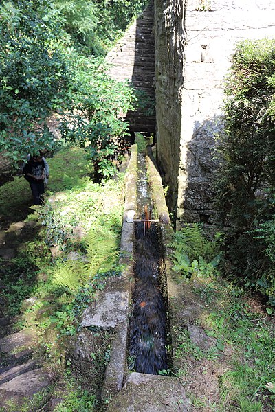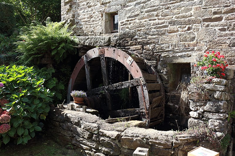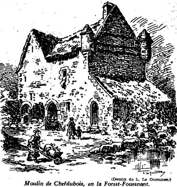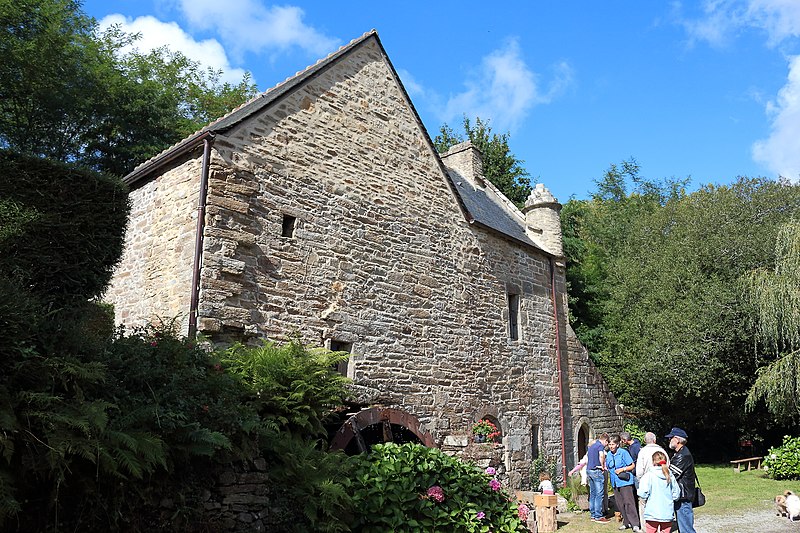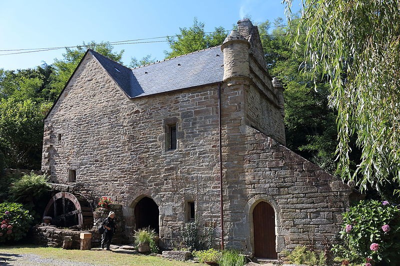 Présumé dater de la fin du XVIe siècle, ce moulin à eau est d'origine sans doute antérieure et de fondation monastique. Il se trouvait sur l'ancienne paroisse de Locamand. Son volume, ses matériaux, ses deux tourelles d'angle et sa position encaissée lui confèrent une grande qualité monumentale et l'aspect d'un manoir breton. Moulin à farine, il est bâti en granit, avec un moyen appareil dans les parties basses ; son plan est rectangulaire et il est élevé d'un étage, percé d'étroites ouvertures et doté de portes chanfreinées. Habité par la famille du meunier, il conservait au début des années 1930 une couverture en chaume. Le moulin se raccorde à un canal de dérivation long d'environ 800 mètres, situé à quelque 6 km de la source. Son dispositif hydraulique, bien préservé, porte les dates 1779 et 1792, inscrites en français dans le granit monolithe du noc. Deux fortes roues chevillées en chêne, externes et de dessus, d'un diamètre de 3 mètres, sont placées de part et d'autre des façades barlongues. Elles entraînaient deux paires de meules et un cylindre, ce dernier ayant été installé après la guerre.