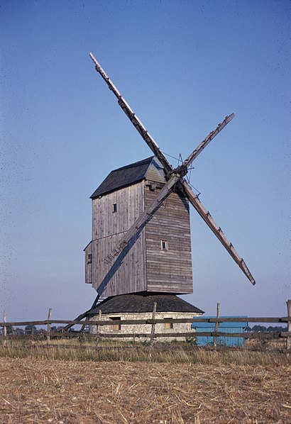 Ce moulin appartient au type tout en bois, de forme prismatique et de plan rectangulaire. Il repose sur une tourelle maçonnée qui servait de magasin. Comme beaucoup de moulins beaucerons, il est monté sur un pivot soutenu par des étais. La tour, bardée de bois, abrite le mécanisme. Les quatre ailes, fixées perpendiculairement à l'arbre, ont été pourvues de planchettes articulées commandées de l'intérieur par un mécanisme, en remplacement des ailes de toile. Concurrencés depuis le milieu du XIXe siècle par la machine à vapeur et la modernisation des moulins à eau, les moulins à vent ont connu leur heure de gloire au XVIIIe siècle et au début du XIXe.