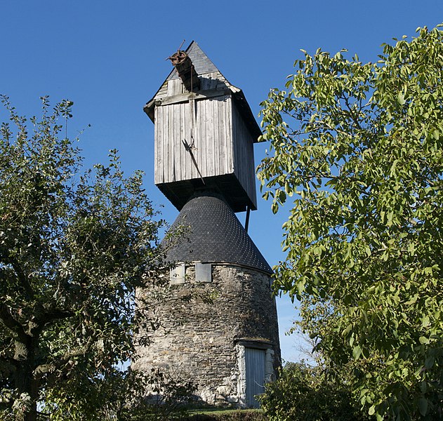 Le moulin à vent de la Garde, situé à Avrillé (Maine‑et‑Loire), présente des maçonneries qui ne semblent pas antérieures au XVIIe siècle. Son prédécesseur, probablement un cavier, relevait censivement de la seigneurie de la Perrière et, en 1584, son meunier devait une rente de 30 livres tournois aux religieux augustins d'Angers. La masse du moulin actuel est formée d'une base cylindrique contenant la cave où se trouvent les meules ; elle s'élève à environ 4 m de hauteur et fait office d'épaule pour la tour du massereau. L'ensemble est réalisé en moellons de schiste. Contrairement à beaucoup d'autres caviers, la partie haute du massereau qui porte le pied du moulin est en charpente couverte d'ardoises plutôt qu'en maçonnerie. La hucherolle, cage en bois abritant le renvoi d'angle, l'arbre‑moteur et les ailes (Berton), a été refaite à neuf en 1981. L'édifice est inscrit au titre des monuments historiques en 1982.
