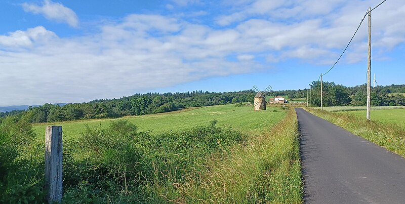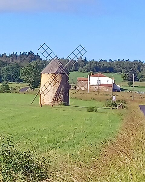 Le moulin à vent de la Maison Blanche se situe sur le plateau d'Ally, sur la commune d'Ally (Haute-Loire), à 900 mètres d'altitude. Ce plateau a autrefois favorisé la présence de plus d'une dizaine de moulins. Après la Révolution et l'abolition des droits féodaux, la première moitié du XIXe siècle a vu se multiplier des moulins artisanaux ou familiaux ; les moulins d'Ally, dont certains datent d'environ 1820, illustrent ces évolutions sociales. Le moulin-tour circulaire, bâti en moellons assisés en 1882, a fonctionné jusqu'en 1956. Il conserve son mécanisme d'origine entièrement intact. La toiture est conique, constituée d'une charpente tournante recouverte de voligeage jointif muni de couvre-joints. Une bâtière, posée sur le cône, dégage un tympan triangulaire où sont fixées les ailes en bois. Au droit de l'axe des traverses, une saillie métallique reçoit une perche permettant de faire pivoter la charpente pour orienter les ailes selon le vent. Le moulin est inscrit au titre des monuments historiques par arrêté du 4 novembre 1983.
