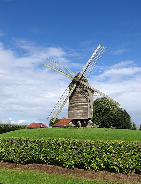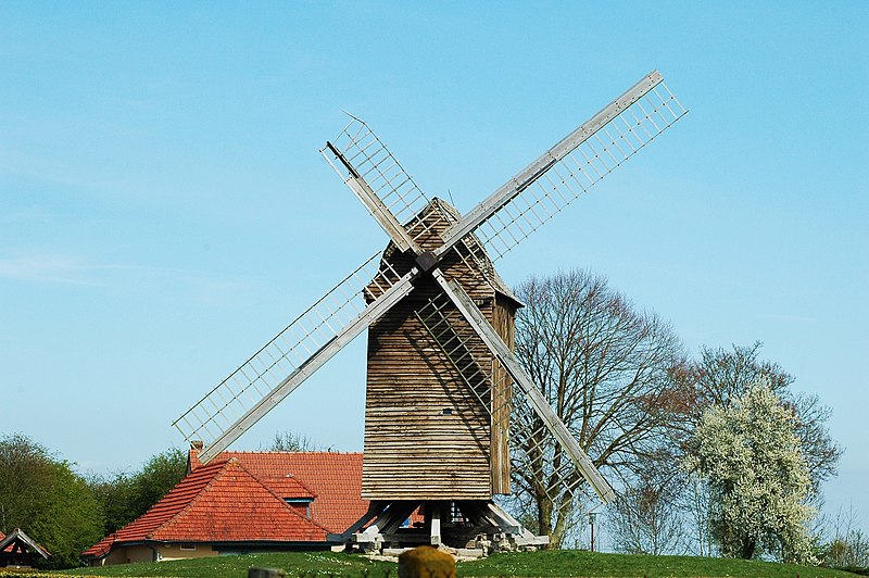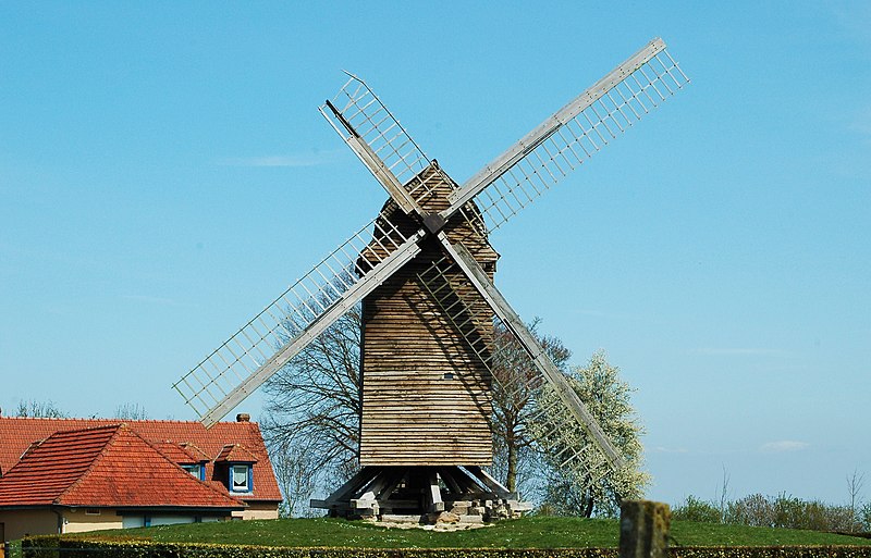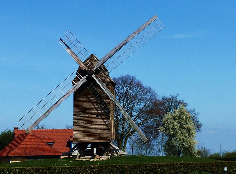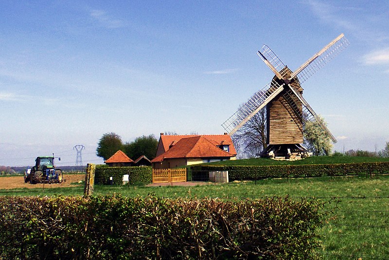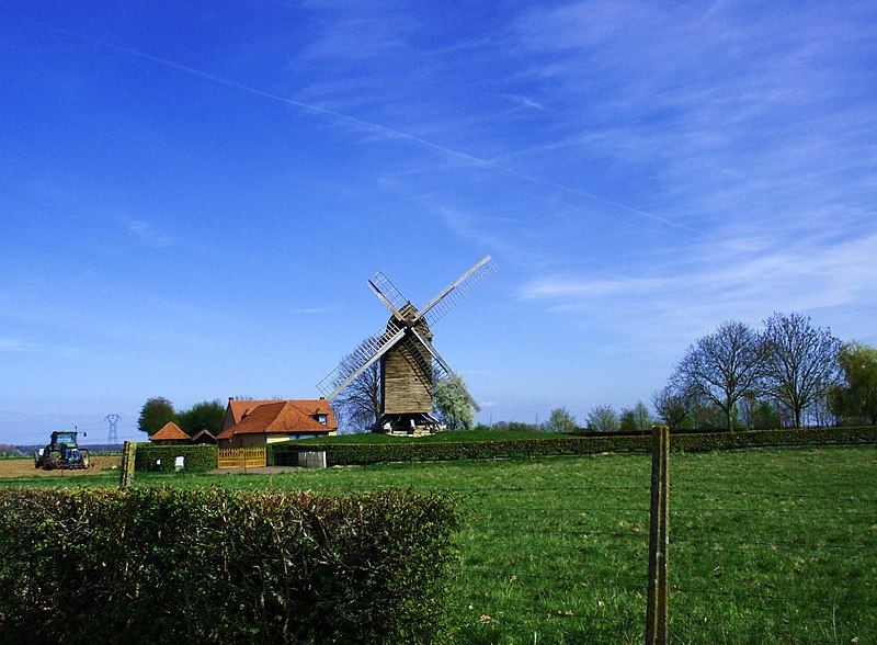 Le moulin à vent de Saint-Maxent se dresse en bordure de la route Abbeville-Rouen, sur la commune de Saint-Maxent, dans la Somme. Il s'agit d'un moulin de bois sur pivot, dit aussi sur pioche, construit en 1630. Ce type de construction est le plus répandu dans le nord de la France, mais le moulin de Saint-Maxent est le seul exemplaire picard complet et d'origine. Des restaurations ont eu lieu au XVIIIe siècle, comme l'indiquent des pièces datées de 1736-1737, et son mécanisme en bois porte la date de 1739. Il est bâti sur une motte féodale remontant au XIIIe siècle. Protégé au titre des monuments historiques, il a été classé par décret le 19 janvier 1948. Depuis 1985, l'association Les Amis du moulin à vent de Saint Maxent œuvre à sa conservation et à sa valorisation. Le site accueille des ateliers pédagogiques, notamment l'atelier « du grain au pain », qui se déroule en trois étapes d'environ vingt minutes chacune : pétrissage, cuisson et emport du pain. Des ressources documentaires existent dans des bases telles que Mérimée, dans des notices locales comme celles du CRDP d'Amiens, et sur Wikimedia Commons, et le moulin figure dans les inventaires des monuments historiques et des moulins à vent de la Somme.