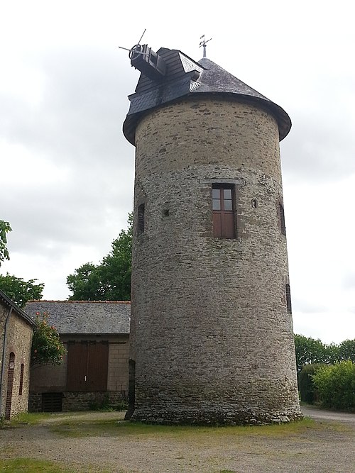 Le moulin des Gués, situé à Fontaine-Couverte, est l'unique moulin à vent en activité dans le département de la Mayenne. Il a été construit en 1824. En 1870, il a été rehaussé d’un étage et doté du système Berton. Acquis en 1884 par la famille Lemoine, il appartient toujours à cette famille. Abandonné à partir de 1954, il a été restauré en 1993 par Louis Lemoine, qui y a produit de la farine de blé noir. L’édifice est inscrit au titre des monuments historiques par arrêté du 26 juin 1989. Le 24 août 2013, une aile s’est brisée, entraînant l’arrêt de la production ; une restauration est en cours. À l’intérieur, on remarque un escalier d’accès au premier étage constitué de planches mises en forme sur l’arbre, des trémies pour le blé noir visibles depuis le trou de relevage de la meule, la meule à froment et le mécanisme d’entraînement principal, avec une petite roue en fonte en bas et une grande roue en bois aux dents en cormier chevillées.