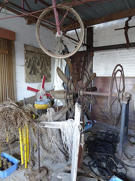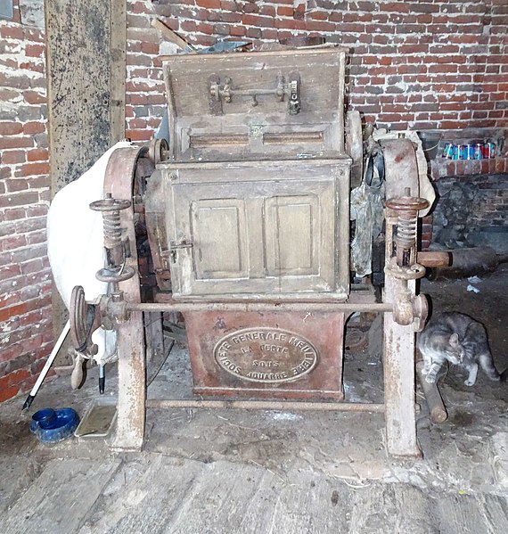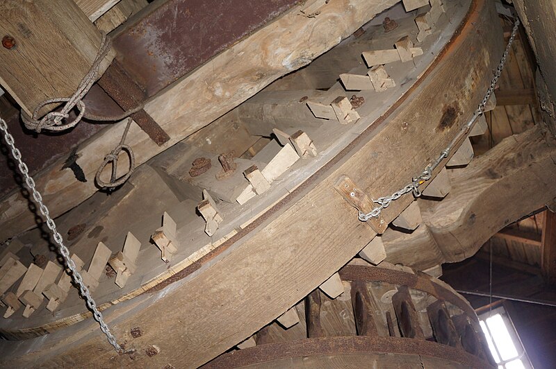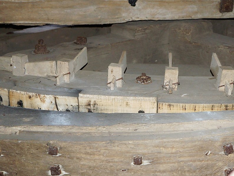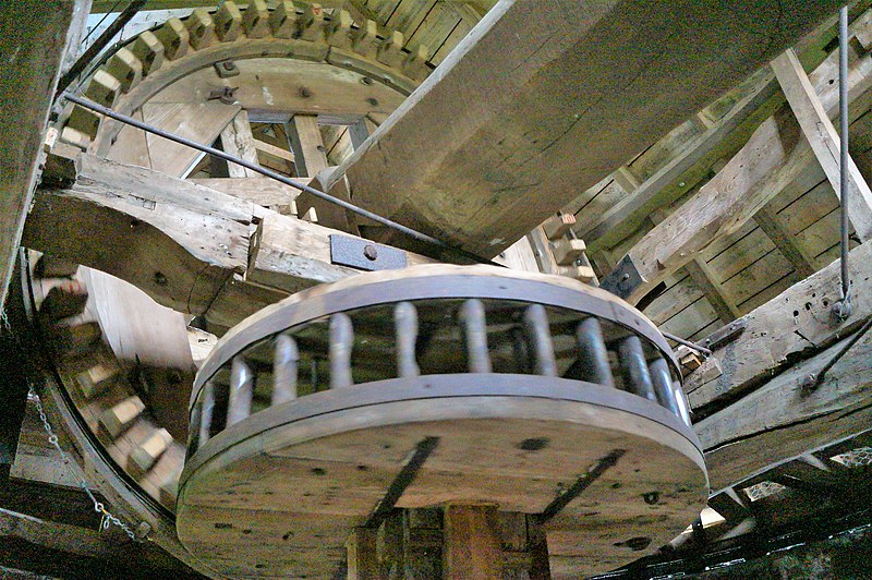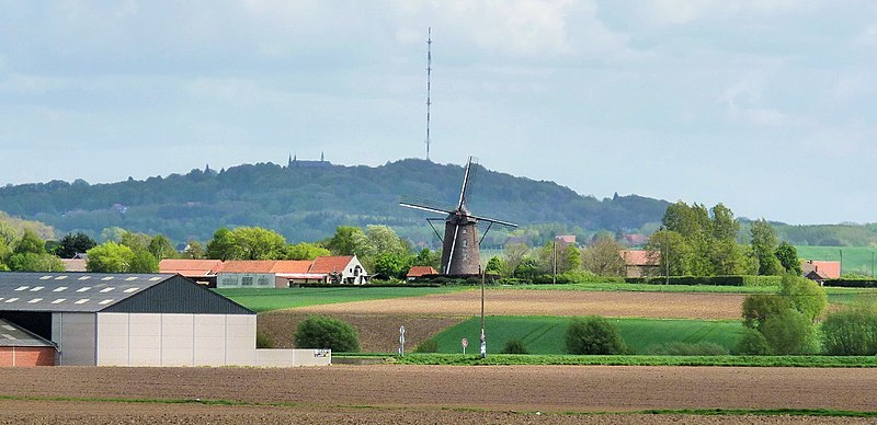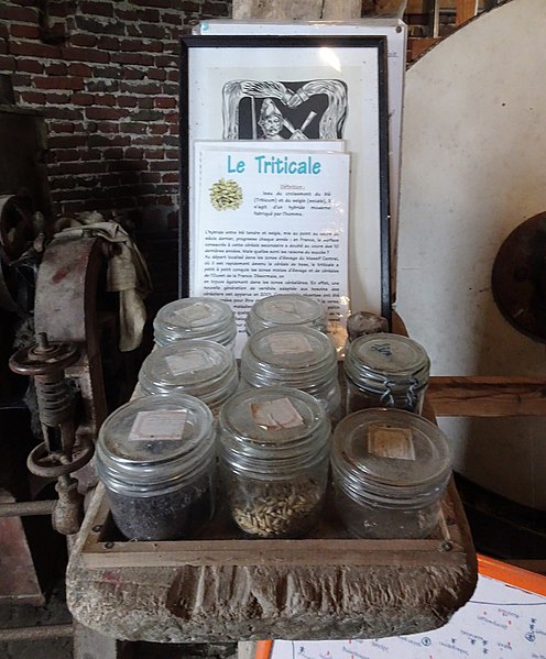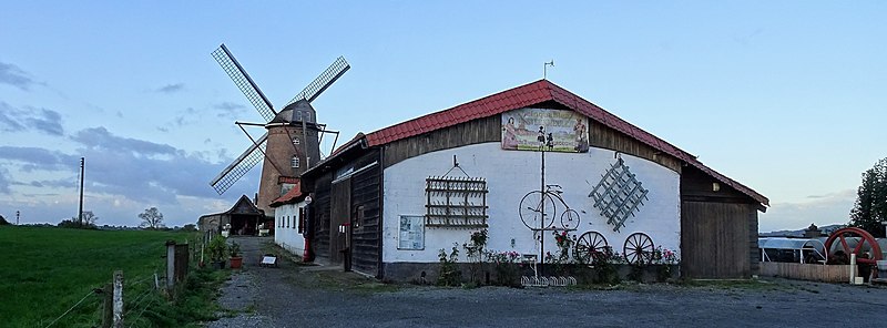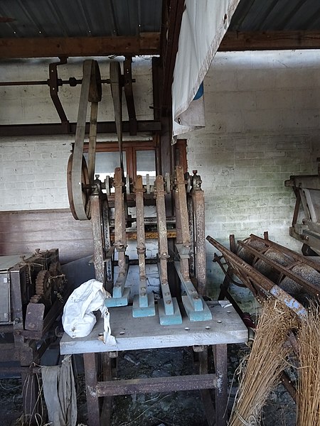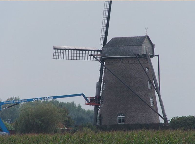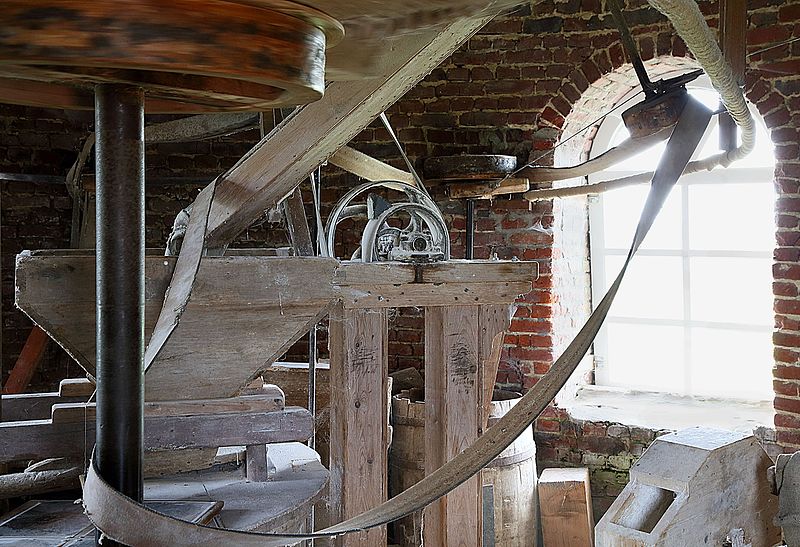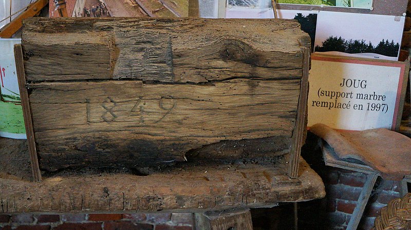 Édifié en 1864, le moulin tour tronconique en brique traduit par sa forme et son matériau l'un des ultimes efforts de captation de l'énergie éolienne, au moment où l'énergie thermique et le charbon à bon marché s'imposaient aux activités autres que meunières. Juché sur une motte, il est équipé d'ailes à traverses d'une envergure de 24 mètres ; relativement archaïque, ses ailes sont soumises à l'entoilage. Son intérêt réside dans le procédé flamand de queue à double chevron : un des chevrons, plus large que le tronc du moulin, déborde celui-ci et, par une barre transversale, entraîne en deux points la calotte et les ailes. La lourdeur de manipulation du corps de la queue est résolue par un chariot d'entraînement à roue dentée circulant sur un monorail à crémaillère. Remplaçant un moulin pivot, il servit d'abord de tordoir à huile puis fut équipé de deux paires de meules entraînées par l'engrenage classique en bois, dont le grand rouet est pourvu d'un frein. Restauré et entretenu, ce moulin peut être mis en rotation pour des démonstrations.