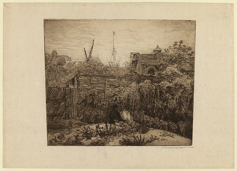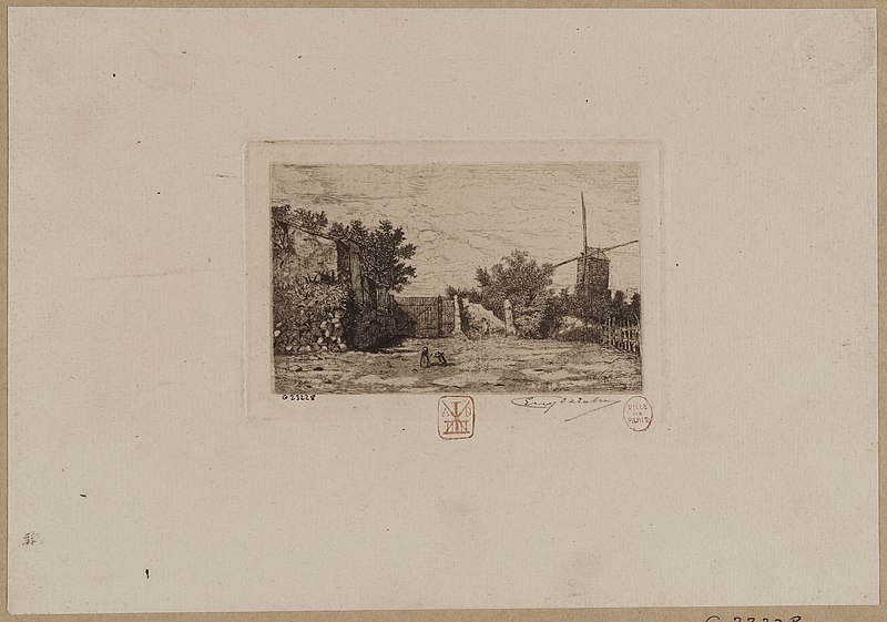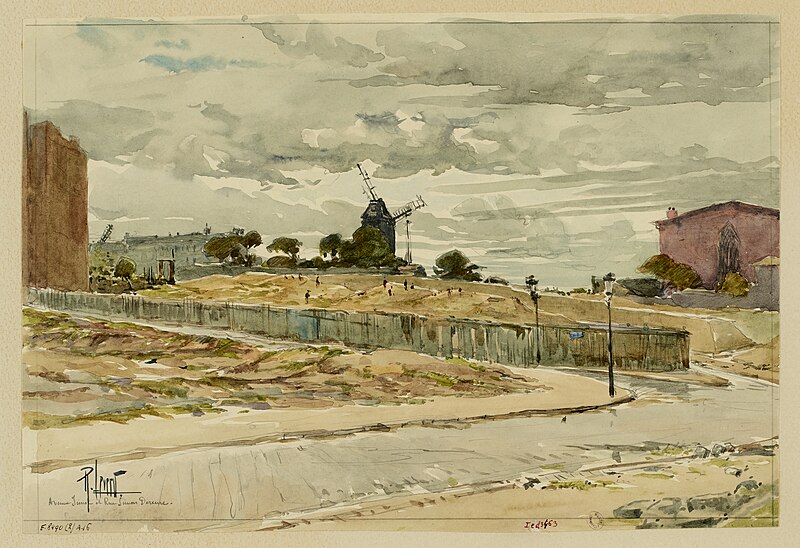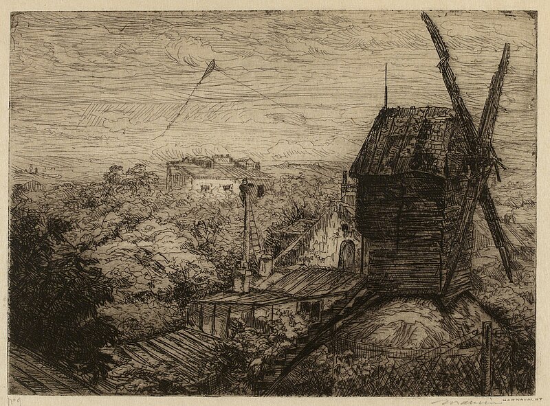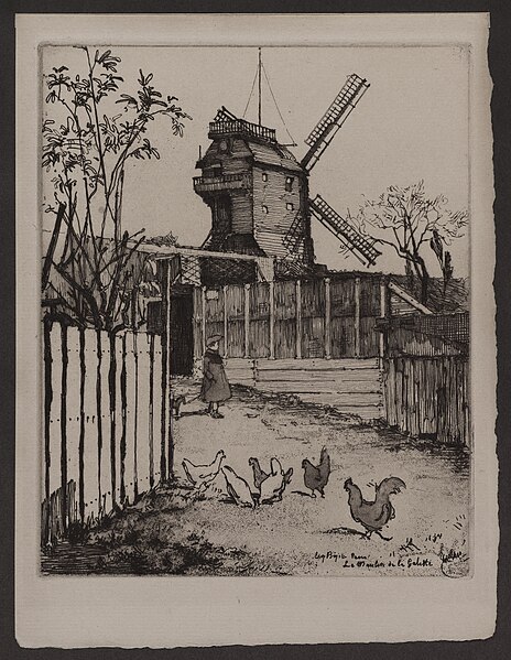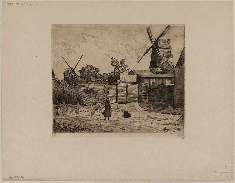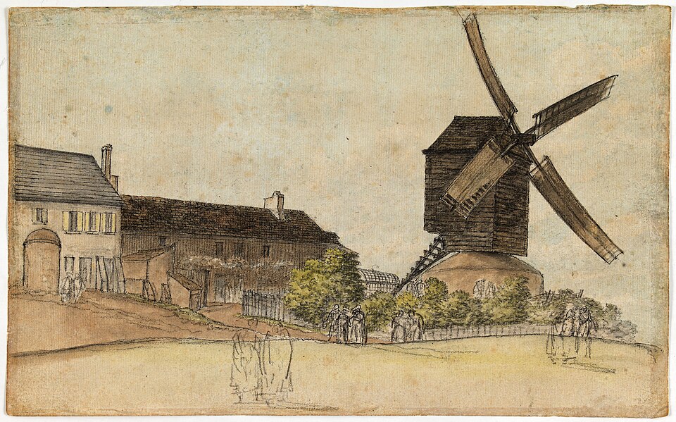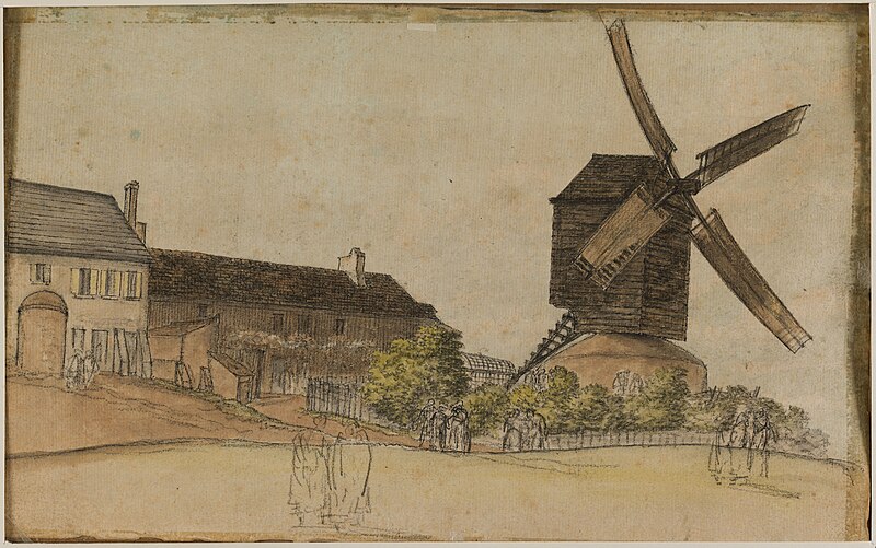 Le Radet, anciennement appelé « moulin Chapon » et cité sous diverses implantations, a été démonté et déplacé à plusieurs reprises avant d’être acquis par Nicolas‑Charles Debray en 1812 alors qu’il se trouvait en mauvais état ; à partir de 1834 il est transféré dans l’enceinte de la ferme Debray et transformé en guinguette, puis sauvé de la démolition en 1915, démonté et replacé rue Girardon, enfin vidé de son mécanisme en 1924 pour devenir un élément publicitaire installé sur le toit d’un restaurant.