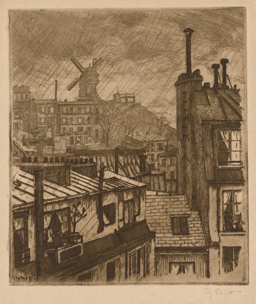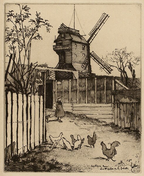 Le Moulin de la Galette attire aussi de nombreux artistes et devient un motif récurrent des arts visuels : Renoir y peint son célèbre Bal du moulin de la Galette, Van Gogh et Picasso figurent le site, et d’autres peintres tels que Toulouse‑Lautrec, Signac, Utrillo, Van Dongen, Ramon Casas, Isaac Israëls ou Louis Vivin l’ont représenté à leur manière ; la plateforme du Blute‑fin, aménagée comme point de vue, permet d’identifier le moulin sur de nombreuses œuvres et photographies anciennes.