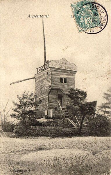 Le moulin à vent dit Moulin Trouillet, parfois appelé moulin de Montrouillet, est un moulin à pivot du XVIIIe siècle situé à Sannois (Val-d'Oise), à environ 15 kilomètres au nord-ouest de Paris. Il est perché au sommet de la butte du mont Trouillet, qui domine la vallée de Montmorency et la vallée de la Seine, offrant un point de vue remarquable. Situé 26 rue des Moulins, il est accessible en bus et ouvert au public le premier dimanche de chaque mois ; les groupes peuvent le visiter sur rendez-vous. Selon les spécialistes, il constitue le plus important moulin sur pivot de la région Île-de-France. Érigé en 1759 par François Roger, vigneron à Franconville, il a fonctionné jusqu'en 1866. La poutre centrale servant de pivot, taillée dans le bois d'un chêne âgé de trois cents ans, mesure six mètres en un seul tenant. L'ensemble du moulin pèse plus de quarante tonnes ; son mécanisme intérieur transformait l'énergie du vent en force mécanique pour moudre le grain entre les meules. À côté du moulin, le Restaurant des Moulins a été édifié à la fin du XIXe siècle sur l'emplacement de l'ancienne maison des meuniers ; restaurée en 1994, cette bâtisse est appelée la Maison du Meunier. Le troisième moulin de Sannois, construit vers 1789, devint un marchand de vins champêtres dès 1895 et fut l'une des guinguettes incontournables de l'époque ; jusqu'en 1920 il fut connu sous le nom de « moulin de la terrasse du Père la Galette », et le restaurant a depuis pris le nom de « moulin de la Galette ». Les moulins de Sannois ont souvent été peints par Maurice Utrillo lors de son séjour dans la ville en 1912 et 1913. Le site de la butte du mont Trouillet, moulin compris, a été classé en 1934. La municipalité est devenue propriétaire en 1939 ; le dernier moulin, longtemps fermé et dégradé, a été rouvert au public en octobre 1976 après des travaux financés par la commune. La tempête de décembre 1999 a cassé une aile et endommagé le rouet ; une restauration fonctionnelle a été menée en 2008. En novembre 2003, un vignoble de 2 050 pieds a été planté sur 3 000 m² au pied du moulin et les premières vendanges ont eu lieu en septembre 2006. Le vin de Sannois a reçu plusieurs récompenses, notamment l'Orchidée d'or : 1er prix pour la cuvée Pinot gris 2008 et 4e prix pour la cuvée Cyrano de Bergerac 2008, ainsi que le prix de la meilleure étiquette. L'édifice est inscrit à l'inventaire des monuments historiques depuis le 12 mai 1975.