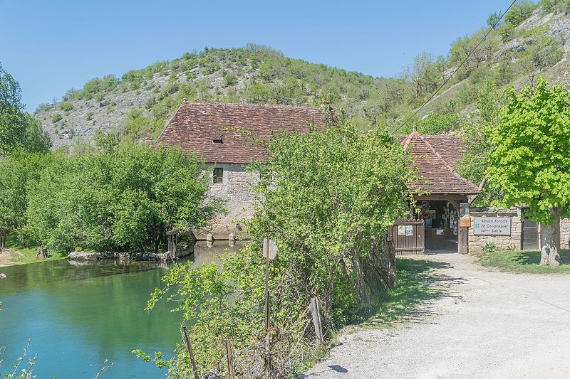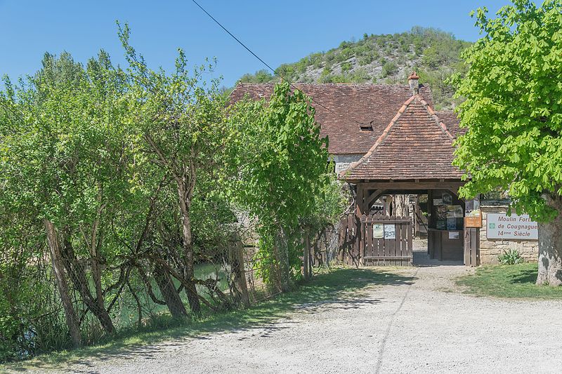Le moulin fortifié de Cognaguet, situé à Calès dans le département du Lot, est un moulin à eau construit essentiellement en pierre de taille sur le cours de l'Ouysse. Un moulin y est mentionné pour la première fois en 1260; il appartenait aux Cisterciens d'Aubazines et aurait été édifié par des frères convers des granges d'Alix, près de Rocamadour. La construction de l'édifice actuel a commencé en 1292 et s'est achevée en 1350, et les maçonneries en pierre de taille peuvent remonter aux XIIIe ou XIVe siècles. Après la guerre de Cent Ans, le moulin, alors en ruines, fut affermé en 1446 à Etienne Peyrelade et Bertrand Dubernat, puis en 1448 à Pierre et Laurent Duras, et le bâtiment porte les traces d'une campagne de réparation et d'aménagement peut‑être réalisée avant la fin du XVe siècle. Les moines le vendent à un particulier en 1778; on relève sur les embrasures des signatures de meuniers datées de 1778, 1779 et 1907. L'édifice a été inscrit au titre des monuments historiques le 10 décembre 1925. Le moulin a fonctionné jusque 1959 et conserve le contingent d'écrasement de 1 535 quintaux qui lui fut accordé en 1936. Bâti sur un site isolé et susceptible d'être attaqué, il présente des éléments défensifs sur trois côtés de la salle des meules et sur la façade méridionale, dont deux meurtrières, et l'entrée se faisait par un passage à gué pouvant être noyé par l'ouverture des vannes. L'alimentation en eau est assurée par un barrage de six mètres d'épaisseur sur l'Ouysse; le système de vannes est actionné par un treuil en bois, dispositif exceptionnel conservé sur place. L'intérieur, pavé de galets, abrite quatre paires de meules de 1,5 tonne entraînées par des rouets en bois, et l'ensemble des mécanismes est entretenu dans la tradition et le respect des matériaux. Témoin remarquable de la meunerie préindustrielle, le moulin est ouvert au public depuis une quarantaine d'années et propose des démonstrations de mouture d'avril à septembre.