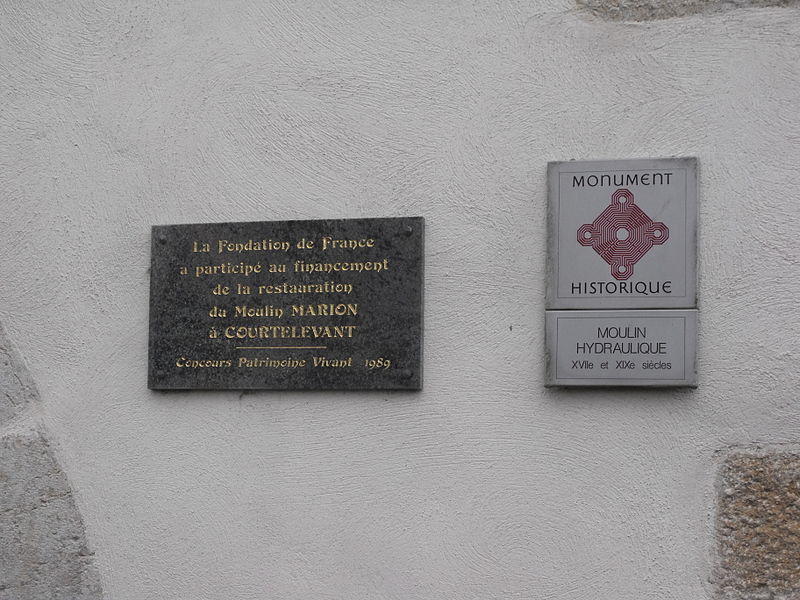 Le moulin de Courtelevant, dit moulin Marion, est un moulin à eau alimenté par la Vendeline, situé à Courtelevant (Territoire de Belfort), près de Delle et de la frontière suisse. L'origine exacte est inconnue ; il dépendait de la seigneurie de Florimont, cédée à la France en 1648. Devenu bien national à la Révolution, il fut vendu en 1805 à Jean‑Pierre Marion ; la famille Marion le conserva jusqu'à l'arrêt de la meunerie en 1905. Modernisé en 1840 par l'acquisition d'un mécanisme Courteau, il fut dévasté par un incendie en 1855 puis reconstruit en 1856, avec un nouvel atelier en retour d'angle sur quatre niveaux abritant les appareils de mouture actionnés par une roue hydraulique en dessus. Vers 1871‑1872, une extension adjointe au pignon est permit d'installer des équipements de préparation du grain (triage, nettoyage, humidification), réorganisant la chaîne de production. Face à la concurrence des minoteries régionales, la production de farine cessa en 1882. La meunerie fut interrompue en 1905 ; une laiterie‑beurrerie fonctionna ensuite dans le sous‑sol de la maison d'habitation, d'abord entraînée par la force hydraulique, puis par l'électricité à partir de 1923 ; selon les sources cette activité a perduré jusqu'en 1935 ou jusqu'en 1953. Le moulin a conservé un ensemble d'installations du XIXe siècle — roue hydraulique, transmission mécanique, appareils de mouture et de blutage — qui en font un témoin bien documenté et cohérent par son architecture. En 1847, quatre roues hydrauliques étaient en fonctionnement. En 2000, on y recensait un nettoyeur (tarare), un trieur, un trieur‑humidificateur, un mélangeur, deux bluteries, un appareil à cylindres, quatre paires de meules et une roue hydraulique rétablie en 1994. L'Association des Amis du moulin de Courtelevant, fondée en 1988, a conduit des campagnes de restauration entre 1988 et 1994, dont la remise en état en 1989 d'un atelier à pan de bois, et a œuvré à la valorisation et à l'ouverture du site au public. Le moulin a été inscrit aux Monuments historiques en 1990 ; la totalité du réseau hydraulique a été inscrite en 2006. Depuis 2002 il fonctionne à nouveau à des fins non commerciales, accueillant visites et démonstrations.