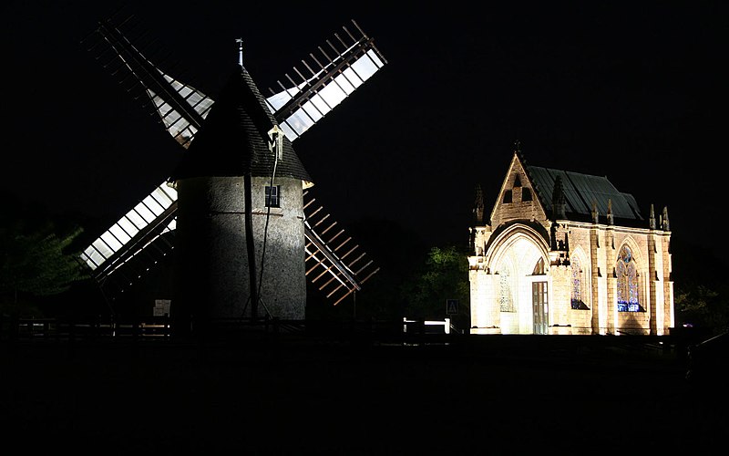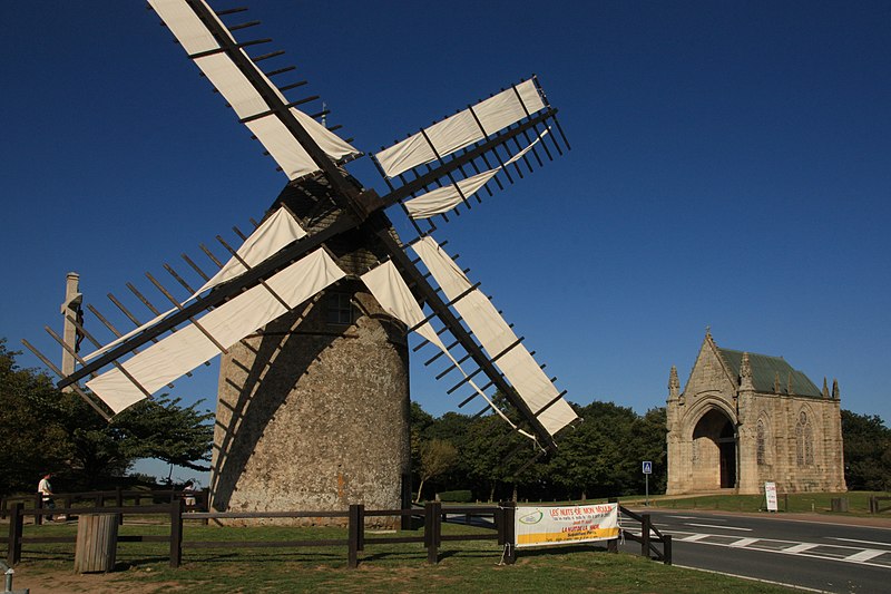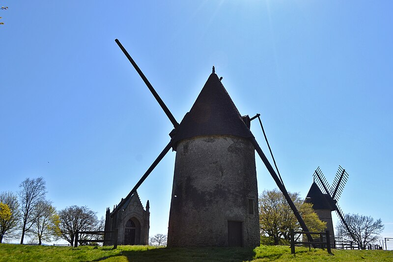 Les moulins du Mont des Alouettes, situés aux Herbiers sur le mont culminant à 231 mètres, jouxtent une chapelle. Autrefois, le site comptait huit moulins; deux d'entre eux auraient été construits au XVIe siècle, et l'un appartenait au seigneur de l'Ementruère avant d'être acquis par Jean des Herbiers, seigneur de l'Etenduère, en 1564. Le 18 septembre 1823, la fille de Louis XVI, mariée au duc d'Angoulême, offrit une importante somme pour permettre la construction de la chapelle, qui, lors du passage de la duchesse du Berry le 5 juillet 1828, n'était alors que partiellement édifiée. À l'époque, les huit moulins n'adoptèrent pas le système mis au point par l'ingénieur Berton, le vent étant considéré comme suffisamment fort. Cinq moulins furent détruits pendant la Première Guerre mondiale; deux survivants ont été restaurés récemment par la commune des Herbiers et le Conseil départemental de la Vendée. L'un de ces moulins a reçu la toiture d'un moulin des Ardilliers de Beaurepaire. Les moulins sont inscrits au titre des monuments historiques depuis le 27 mai 1975.