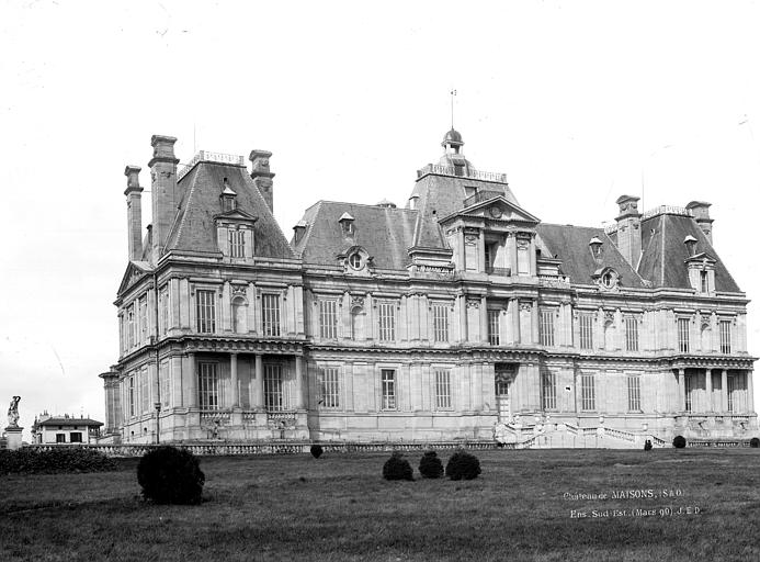 Le mur d'enceinte qui borde le domaine du château de Maisons date du XVIIe siècle et a été conçu d'après des dessins attribués à François Mansart. Construit en pierres, il participait à la délimitation du vaste domaine, alors accessible par deux grandes entrées à pavillons et doté d'un dispositif de « saut-de-loup » pour préserver la perspective sans interrompre la vue. Malgré les nombreux changements de propriétaires, les transformations intérieures et le morcellement du parc au XIXe siècle, ces vestiges du mur sont en grande partie préservés. Ils ont été inscrits au titre des monuments historiques en 1987. Le mur illustre l'importance de l'enclos paysager qui entourait la demeure, organisée en un petit parc et un grand parc et articulée par des avenues et des entrées monumentales. Les démolitions et lotissements successifs au XIXe siècle, notamment la disparition des grandes écuries, n'ont pas effacé ces vestiges, qui témoignent de la physionomie originelle du domaine. La protection portée sur le mur s'inscrit dans un cadre plus large : plusieurs abords du château bénéficient de mesures de protection au titre des monuments historiques. Aujourd'hui, ces fragments de l'enceinte contribuent à la lecture du site et à la compréhension des aménagements conçus autour du château, chef-d'œuvre de l'architecture civile du XVIIe siècle associé à François Mansart. Parmi les propriétaires qui ont marqué l'histoire du lieu figurent notamment René de Longueil, Charles Philippe comte d'Artois, le maréchal Jean Lannes et Jacques Laffitte, dont les actions ont influencé l'évolution du domaine et de ses clôtures. Ces vestiges offrent ainsi un repère tangible pour apprécier l'organisation et l'ampleur du parc tel qu'il se présentait aux XVIIe et XVIIIe siècles.