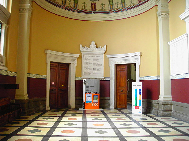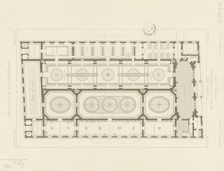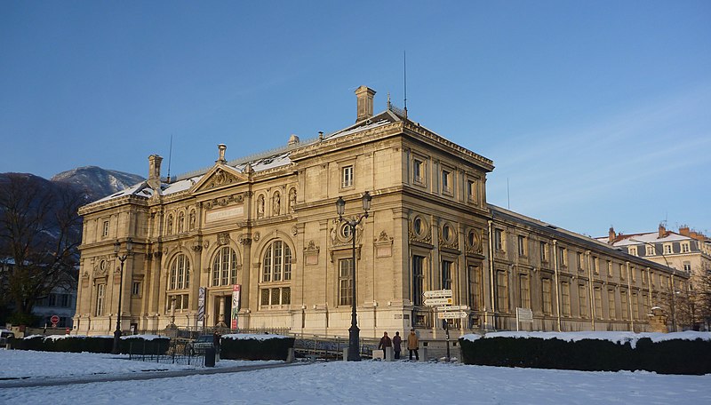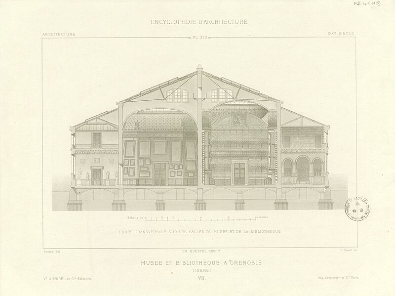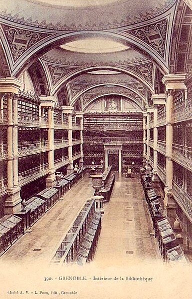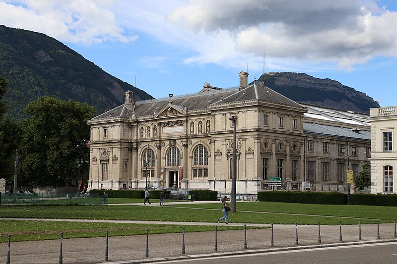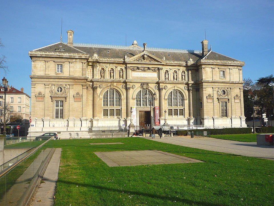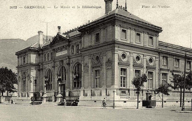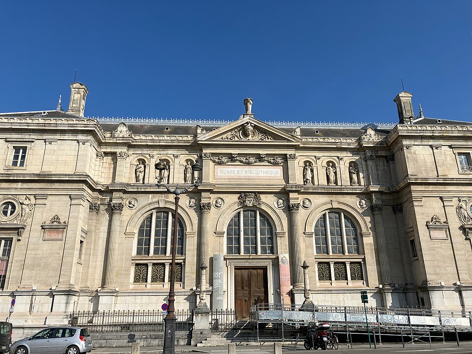 Le musée-bibliothèque de Grenoble est un édifice culturel du XIXe siècle situé place de Verdun, achevé en 1870 ; il a abrité la bibliothèque municipale jusqu'en 1970 et les collections du musée de Grenoble jusqu'en 1992. Depuis la fermeture du musée, le bâtiment accueille des expositions temporaires, des salons et, depuis 2004, un espace municipal d'information et d'expositions baptisé la Plateforme. La bibliothèque municipale trouve ses origines dans un achat de 1772 effectué par des érudits locaux après la mise en vente des livres hérités de l'évêque Jean de Caulet, tandis que le musée a été fondé en 1798 par le professeur Louis-Joseph Jay et des donateurs. Ces deux institutions se sont installées dans les locaux désaffectés de l'ancien collège des jésuites, transformé en École centrale puis en lycée. La bibliothèque s'y est installée en 1800, le musée y a pris place en 1802 après un bref séjour au palais de l'évêché, et un décret impérial vint enrichir ses collections de peinture. Face à l'accroissement des collections, la ville prit la décision de construire un nouvel édifice au milieu du XIXe siècle ; le conseil municipal adopta le principe du projet et l'architecte parisien Charles-Auguste Questel fut désigné. Les plans, discutés avec le conservateur Alexandre Debelle, furent remaniés afin de privilégier une grande salle rectangulaire pour le musée, puis validés par la municipalité. Questel rédigea le descriptif technique et choisit plusieurs pierres de taille pour l'édifice ; il confia le suivi des travaux à l'architecte grenoblois Hector Riondel, qui établit un devis global. La mise en adjudication eut lieu en 1864 et l'entreprise locale Ragis & Thouvard remporta le marché du gros œuvre. Le chantier se heurta à la présence d'anciennes fortifications et à des terrains alluvionnaires, ce qui imposa l'enfoncement de milliers de pieux de bois et entraîna des retards et des surcoûts. Au cours des travaux, des changements de pierre furent décidés, les pierres taillées furent livrées depuis des carrières ardéchoises, et la pose de la charpente métallique et des grandes verrières nécessita des collaborations entre entreprises. Le chantier connut plusieurs accidents du travail et des difficultés d'organisation entre maçons et serruriers, ralentissant l'avancement des opérations. Le second œuvre débuta en 1867 et se poursuivit jusqu'à l'été 1870 ; les adjudications concernèrent la menuiserie, la serrurerie fine et les décorations peintes, pour lesquelles un désaccord opposa le maire et l'architecte. Les peintres dauphinois réalisèrent la décoration pompéienne du vestibule tandis qu'un peintre parisien prit en charge le reste de l'édifice ; les menuiseries prévues pour accueillir 80 000 volumes et le mobilier de la bibliothèque furent livrés entre 1868 et 1869. La partie musée ouvrit au public en juin 1870, la bibliothèque en novembre 1872 après la réception définitive des travaux et l'installation des collections, et le coût final de la construction s'éleva à 1 699 377 francs. Sur le plan architectural, l'édifice se caractérise par des soubassements imposants, des salles monumentales et un vestibule dallé de marbres orné des noms antiques de Grenoble et de tables gravées portant les noms des créateurs et donateurs. La grande salle de la bibliothèque, haute d'environ douze mètres, présente galeries, double colonnade, cinq coupoles et peintures monumentales ; les salles de musée sont groupées en trois grandes pièces d'une dizaine de mètres de hauteur. À l'étage se trouvent des salles dédiées à des legs et collections — notamment la salle Agutte et celle dite Saint-Ferriol pour les antiquités égyptiennes — et un escalier hélicoïdal dessert l'ensemble du bâtiment. La façade, traitée en symétrie, réunit colonnes corinthiennes, sculptures allégoriques (œuvres de Roland Mathieu-Meusnier, Auguste Ottin, Hélène Bertaux, Ferdinand Taluet, Louis Auguste Roubaud et Henri Chapu), médaillons d'hommes illustres et candélabres inspirés de modèles romains. Des fissures constatées en 1929 conduisirent à une campagne de consolidation interrompue par la Seconde Guerre mondiale et achevée en 1946, qui mit en évidence des malfaçons dans la qualité du béton et la profondeur d'enfoncement de certains pieux. La bibliothèque quitta le bâtiment en 1970 et le musée ferma ses salles au public en 1992, les collections étant transférées l'année suivante, après quoi le monument fut consacré à des usages d'exposition et d'événements culturels. Le bâtiment est inscrit au titre des monuments historiques depuis 1992 ; depuis 2016 y sont organisées des ventes de livres excédentaires, la salle principale accueille chaque année le Grenoble Street Art Fest depuis 2015 et chaque automne le Mois de la Photo depuis 2013, tandis que certaines salles restent sans vocation précise. La Plateforme, installée dans l'ancienne salle des sculptures sur 480 m2, fonctionne comme centre d'information sur les projets urbains et d'échanges entre habitants et professionnels de l'urbanisme. Le bâtiment a servi de décor au cinéma et a inspiré d'autres projets de musée-bibliothèque ; il est accessible par la ligne A du tramway de Grenoble, plusieurs lignes de bus Proximo et la ligne Transisère 6020 (arrêt Verdun-Préfecture).