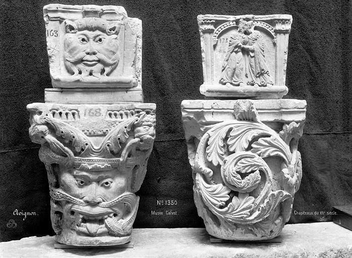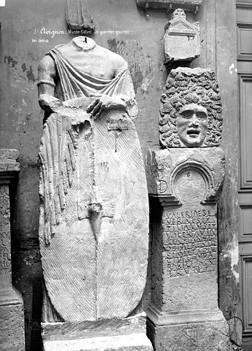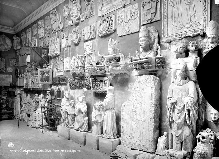 La section d'archéologie égyptienne, formée par le legs d'Esprit Calvet, celui de Marius Clément et des achats complémentaires, comprend un sarcophage anthropoïde d'Ânkh-pa-in-di-is, un vase canope en albâtre au nom d'Iahmès, un ex-voto familial de Yaï, une table d'offrande d'Harsiési et de Pa-di-Mout, un médaillon gallo-romain représentant la tête d'Ammon et une stèle élevée au vice-roi de Nubie Setaou de l'époque de Ramsès II. Le musée lapidaire, dépendant du musée Calvet et installé dans l'ancienne église des jésuites, offre un panorama des civilisations grecque, romaine et gallo-romaine avec des pièces comme la Tarasque de Noves, un sarcophage étrusque, les guerriers gaulois de Vachères et de Mondragon et une Vénus au dauphin.
