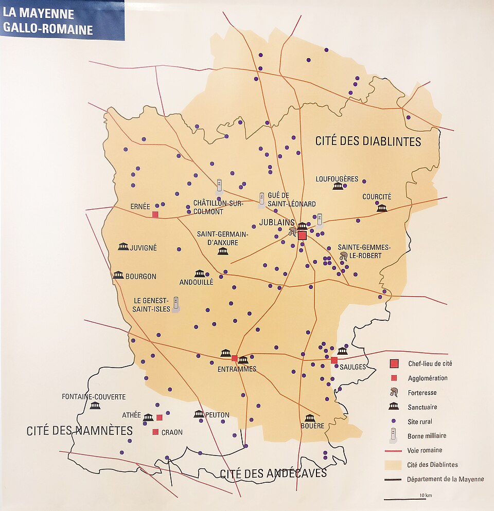 Le musée archéologique départemental de Jublains, situé à l'entrée de la forteresse gallo-romaine à Bais, a ouvert en 1995. Il a été rénové en 2002 et présente désormais les époques gauloise et gallo-romaine à travers l'ensemble du département.