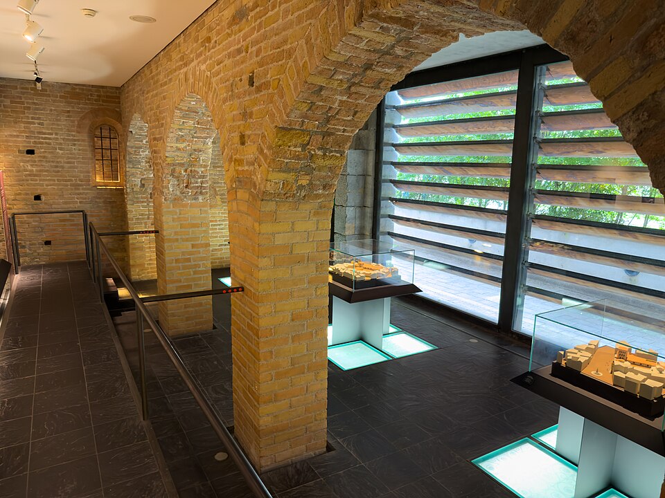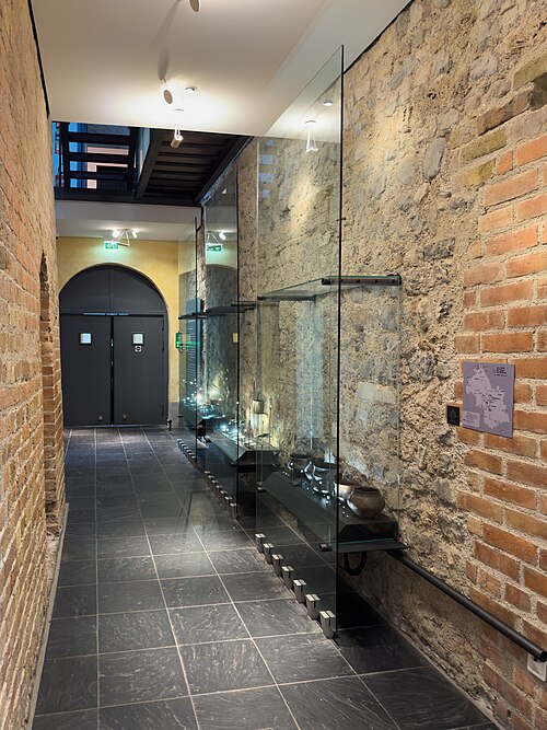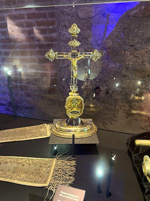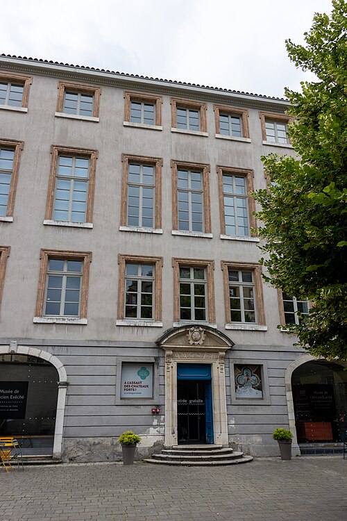 La crypte archéologique met au jour le premier groupe épiscopal de la cité, édifié le long puis sur les remparts romains. Découverte lors des travaux de construction de la ligne B du tramway en 1989, elle a été fouillée entre 1991 et 1996, le tracé du tramway ayant été modifié pour permettre ces recherches. On y observe la base du mur d'enceinte daté de la fin du IIIe siècle (284-293), une tour, et la poterne de la porte Viennoise dite « Herculea », dont le parement est conservé sur une douzaine de mètres. Des vestiges gallo-romains antérieurs, rares et dispersés, remontant au IIe siècle av. J.-C., attestent que l'antique Cularo se développait aussi sur la rive gauche de l'Isère. Les fouilles ont montré qu'avant 335 la poterne avait été annexée par un portique et des bâtiments empiétant sur le domaine public, probablement d'usage civil ou militaire. Entre la fin du IVe et le premier tiers du Ve siècle, la construction d'un baptistère, bâtiment essentiel de l'Église primitive, confirme l'existence d'une communauté chrétienne solidement implantée en ce lieu et la présence d'un groupe épiscopal. Le baptistère a été remanié au fil du temps selon l'évolution du rituel : d'abord une cuve octogonale destinée à l'immersion, puis un bassin réduit muni d'une fontaine pour l'aspersion ; il a été utilisé jusqu'au Xe ou au XIe siècle au plus tard. Après son abandon, il disparaît des sources écrites, les cartulaires constitués sous l'épiscopat de Saint Hugues (1080-1132) n'en faisant pas mention. Aménagée pour la visite publique et accessible depuis le musée de l'Ancien Évêché, la crypte a nécessité la mise en place d'une importante machinerie destinée à assurer un équilibre hygrométrique, une température constante et un renouvellement régulier de l'air afin de préserver les vestiges. Elle présente également quelques objets des premiers siècles de notre ère, comme une stèle funéraire portant la mention de Cularo, et des maquettes permettant de reconstituer la position de la cathédrale au sein des remparts. Ensemble, ces vestiges témoignent d'une occupation continue et des transformations du site du monde romain à l'époque médiévale.