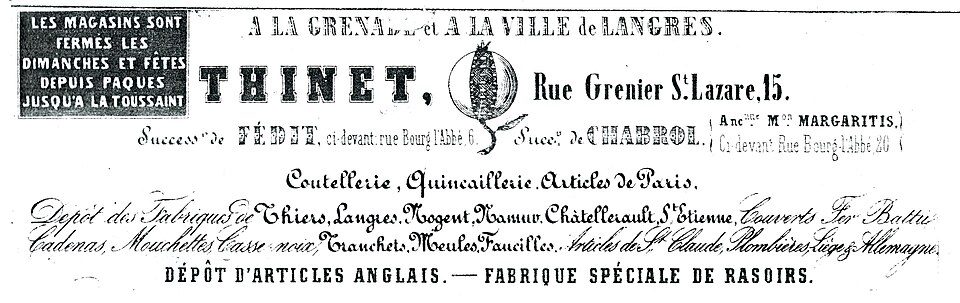 - coutellerie professionnelle : couteaux de boucher, de cuisine, etc.