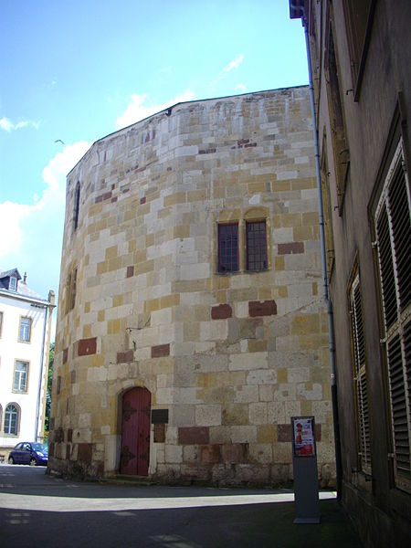 La Tour aux Puces est l'ancien donjon du château féodal de Thionville, érigé aux XIe-XIIe siècles selon l'analyse architecturale. À quatorze côtés, elle repose sur une fondation circulaire haute de 2,5 à 3 mètres; certains auteurs y ont vu les vestiges d'une chapelle ou d'un domaine carolingien, mais cette assise paraît contemporaine de l'élévation polygonale. Les maçonneries sont en grande partie d'origine et comportent des blocs d'origines diverses, dont plusieurs réemplois d'édifices antérieurs. En revanche, la plupart des percements sont postérieurs et il ne subsiste des aménagements intérieurs primitifs que des corbeaux dans la cour, témoins d'un étage disparu. La tour, donjon des comtes puis des ducs de Luxembourg, occupe l'emplacement d'un palatium carolingien cité au milieu du VIIIe siècle et détruit au Xe siècle, et elle constitue le plus ancien monument de Thionville. En 1292 elle devient le siège de la prévôté, fonction qu'elle conserve jusqu'au milieu du XVIe siècle. À la fin du XIVe ou au début du XVe siècle une campagne importante modifie l'extérieur (nouveaux percements, adjonction de bâtiments annexes) et l'intérieur, avec la création d'un mur de refend et l'installation d'une cheminée ornée des armes de Jean IV de Raville. Intégrée au domaine militaire à la suite des travaux de remparage menés par les Espagnols entre 1542 et 1558, la tour est réaménagée dans la seconde moitié du XVIe siècle, avec de nouveaux percements et des transformations intérieures. Une inscription indique que les pièces du rez-de-chaussée sont voûtées en 1583; le voûtement des entresols et de deux salles du premier étage semble relever de la même époque, comme l'attestent les armoiries de Wirich de Créhange sur la clé de la salle 5. L'escalier en vis conduisant au deuxième étage et les deux colonnes de cet étage sont également attribués au XVIe siècle; ces colonnes devaient supporter des pièces de charpente, signe que la couverture polygonale à forte pente d'origine n'existait probablement plus alors. L'aménagement de la cour, tel qu'il apparaît sur des plans du XVIIIe siècle, pourrait remonter à ces grands bouleversements, tandis que des modifications de détail sont relevées aux XVe, XVIe, XVIIe et XVIIIe siècles. Les projets de 1733 visant à transformer la tour en prison militaire n'ont guère été réalisés. Propriété du Génie au XIXe siècle, elle fait l'objet de restaurations sous l'annexion allemande; la couverture est refaite en 1880, en zinc côté Moselle et en tuiles côté cour. Les travaux de démolition des fortifications de 1903 dégagent la tour de ses constructions annexes, puis la ville la transforme en musée en 1904 avec la construction d'une terrasse et l'adjonction de créneaux côté rivière. Fortement endommagée pendant la Seconde Guerre mondiale, la Tour aux Puces est restaurée pour la réouverture du musée en 1966. L'appellation « tour aux Puces » est une mauvaise traduction du francique Pëtztuurm, qui signifie « tour au puits » ; elle a été mentionnée en 1295 comme tour de Mirabel ou Meilbourg et appelée tour de Thion au XIXe siècle. Inscrite au titre des monuments historiques par arrêté du 11 mai 1932, la tour abrite aujourd'hui un musée présentant l'histoire de Thionville et de sa région, de la Préhistoire à la Renaissance, répartie en huit salles thématiques. Deux légendes locales entourent l'édifice : l'une évoque une pièce secrète et la disparition d'une clé au XIe siècle, l'autre raconte une princesse enfermée et attaquée par des puces, récits transmis oralement et sans valeur historique attestée.
