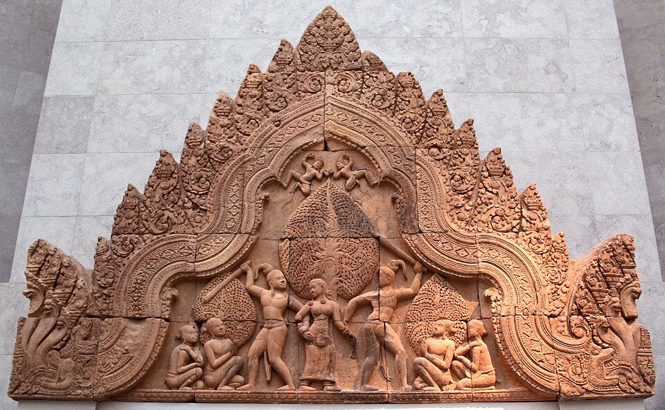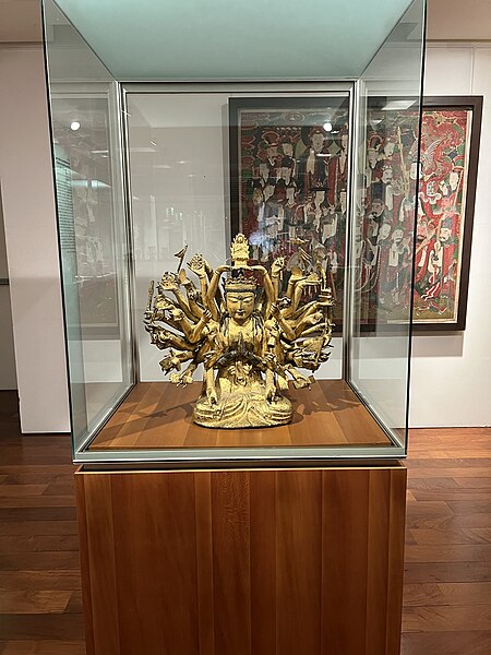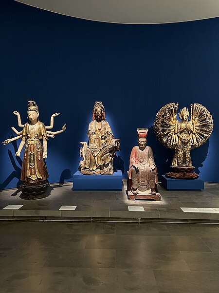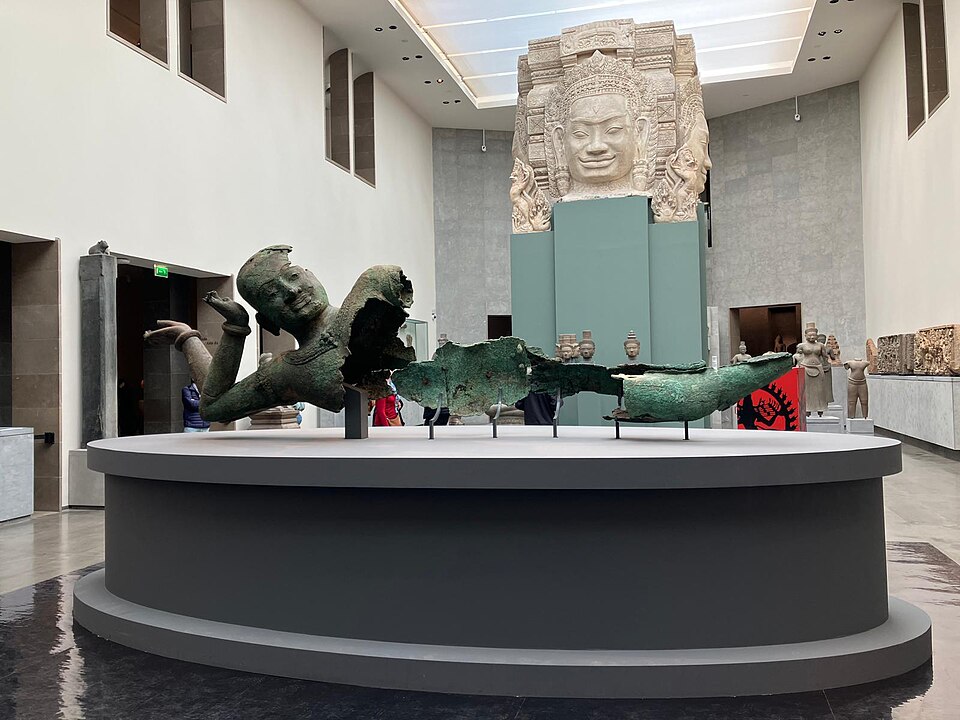 Le musée Guimet trouve son origine dans le projet d'Émile Guimet, industriel lyonnais, qui souhaitait créer un musée consacré aux religions et aux civilisations d'Égypte, de l'Antiquité classique et des pays d'Asie. Ses voyages en Égypte et en Grèce, puis son tour du monde en 1876 avec des étapes au Japon, en Chine et en Inde, lui permirent de rassembler d'importantes collections qu'il présenta à Lyon à partir de 1879. Il fit ensuite construire un musée à Paris pour y transférer ces collections ; ce musée fut inauguré en 1889. En 1927, le musée Guimet fut rattaché à la Direction des musées de France et enrichi par des acquisitions et dépôts issus de grandes expéditions en Asie centrale et en Chine, notamment celles de Paul Pelliot et d'Édouard Chavannes, ainsi que par les œuvres du musée Indochinois du Trocadéro. Tout au long des années 1920 et 1930, des dépôts importants provenant de la Délégation Archéologique Française en Afghanistan vinrent compléter les collections. Sous la direction de Joseph Hackin, qui menait aussi des fouilles en Afghanistan, le musée réalisa d'importants travaux, dont la couverture de la cour centrale pour accueillir à partir de 1938 une partie des collections khmères. Après 1945, dans le cadre d'une réorganisation nationale des collections, le musée envoya ses pièces égyptiennes au Louvre et reçut en retour l'ensemble des œuvres du département des arts asiatiques du Louvre, faisant de l'institution de la place d'Iéna l'un des premiers musées d'arts de l'Asie au monde. Des donateurs et les fonds d'acquisition des musées de France ont également contribué à l'enrichissement des collections.