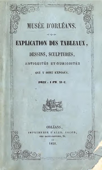 Le fonds initial du musée des Beaux-Arts d'Orléans a été constitué par le mécène et collectionneur Aignan-Thomas Desfriches (1715-1800) et par le peintre Jean Bardin (1732-1809), fondateur de l'école de dessin. Tous deux ont rassemblé des œuvres saisies dans les établissements religieux pendant la Révolution française. Par la suite, les collections se sont enrichies par des dons, des legs et des dépôts de l'État.