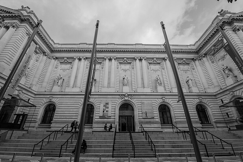 Le musée d'Arts de Nantes présente un panorama des principaux mouvements artistiques français et européens du XIIIe siècle à nos jours et figure parmi les plus importantes collections publiques françaises hors de Paris. Il est accessible depuis la station Trébuchet, desservie par les bus 11 et 12. Il a été créé par l'arrêté consulaire du 14 fructidor an IX (1er septembre 1801) et a reçu des œuvres acquises par l'État ainsi que des dépôts du Musée central (aujourd'hui le Louvre). L'achat par la ville de la collection des frères Cacault a largement contribué à la richesse du musée, cette collection comptant plus d'un millier de peintures, plusieurs sculptures et des milliers de gravures. L'État a également envoyé au musée 43 tableaux en 1804 et 1809. À ses débuts, les œuvres étaient dispersées dans divers bâtiments municipaux en l'absence d'un lieu consacré. Le choix d'installer le musée à l'étage de la Halle aux Toiles fut arrêté en 1829 et le musée y fut inauguré en 1830, mais les espaces se révélèrent rapidement insuffisants malgré des extensions successives et le legs Clarke de Feltre qui donna au musée son nom pendant plusieurs décennies. Le bâtiment de la Halle, conçu à l'origine pour le marché, demeura longtemps inadapté à l'exposition des collections et fit l'objet de nombreuses critiques. L'État intervint ensuite pour encourager la construction d'un nouveau palais des Beaux-Arts ; un concours national fut organisé et l'architecte Clément Josso fut désigné, la fin du chantier étant assurée par Léon-Félix Lenoir en raison de contraintes budgétaires. Le nouvel édifice, baptisé « Palais des Arts », fut inauguré en 1900. La façade principale s'inspire des palais de la Renaissance italienne, flanquée de pavillons et ornée d'allégories exécutées par plusieurs sculpteurs, tandis que l'intérieur s'articule autour d'un vaste hall voûté, d'un double circuit de galeries sur deux niveaux et d'un patio éclairé par une verrière, desservis par un monumental escalier à double volée orné d'une fresque de Hippolyte Berteaux. Les façades, les toitures et l'escalier d'honneur sont inscrits au titre des monuments historiques depuis le 29 octobre 1975. Jusqu'en 1985, le bâtiment abrita également l'essentiel de la bibliothèque municipale, et les espaces du rez-de-chaussée furent rénovés dans les années 1980 pour l'accrochage de l'art moderne et contemporain. Au début du XXIe siècle, la municipalité a décidé d'engager une rénovation et une extension ; le concours international fut remporté en 2009 par l'agence Stanton Williams chargée aussi de la scénographie et des aménagements urbains visant à ouvrir le musée sur la ville. Fermé pour travaux en décembre 2011, le musée devait être agrandi pour atteindre environ 17 000 m² et intégrer la chapelle de l'Oratoire ; le chantier fut prolongé, notamment en raison de la présence d'eau souterraine, et la réouverture eut lieu en 2017 avec un coût révisé et des adaptations techniques. Lors de la réouverture en juin 2017, l'entrée, le hall et l'escalier historiques ont été préservés ; le patio a été équipé pour le contrôle climatique et la verrière entièrement restaurée, tandis que façades, sculptures et parquets ont bénéficié d'une restauration d'ampleur. L'extension comprend le Cube, un bâtiment de 2 000 m² destiné à l'art contemporain, conçu pour dialoguer avec le Palais, ainsi qu'un bâtiment relié par le sous-sol hébergeant le cabinet d'arts graphiques et les fonds documentaires. Les travaux ont ajouté un auditorium de 160 places, des salles pédagogiques, des réserves en sous-sol, une librairie-boutique et un café-restaurant, et ont permis d'accroître de 30 % les surfaces d'exposition pour présenter environ 900 œuvres. La chapelle de l'Oratoire, construction du XVIIe siècle classée monument historique, est devenue propriété de la ville et, restaurée, elle est désormais accessible depuis l'intérieur du musée. Les collections couvrent plus de 900 peintures, sculptures, photographies, vidéos et installations, du Moyen Âge à l'art contemporain, et comprennent des dépôts du Fonds régional d'art contemporain des Pays de la Loire et du Centre Pompidou ; elles font du musée le plus important de l'Ouest de la France. On y rencontre des chefs-d'œuvre et des noms majeurs de différentes époques — parmi eux La Tour, Courbet, Delacroix, Monet, Picasso, Kandinsky, Soulages ou Kapoor — ainsi qu'un ensemble remarquable d'italiens primitifs et d'œuvres d'inspiration caravagesque en provenance de la collection Cacault. Le cabinet d'arts graphiques conserve environ 13 500 œuvres sur papier et tissu, dont les albums Cacault et d'importantes séries du XIXe au XXIe siècle. L'accrochage privilégie désormais le dialogue entre époques, confrontant anciennes et récentes créations pour éclairer différemment les œuvres et stimuler la curiosité du public. Les collections se sont constituées grâce aux envois de l'État, aux achats de la Ville et à de nombreux dons et legs, parmi lesquels figurent la collection Cacault, le legs Clarke de Feltre, la donation Urvoy de Saint-Bedan, les dons de Gildas Fardel et Anne Dehez, ainsi que le legs Jacqueline-Françoise Boejat. Un an après sa réouverture, le musée a accueilli 400 000 visiteurs, dépassant les prévisions de fréquentation. Le musée organise par ailleurs des expositions temporaires régulières et est administré par une commission de surveillance entourant une équipe de conservateurs et de directions.