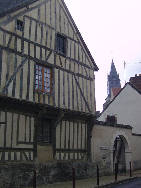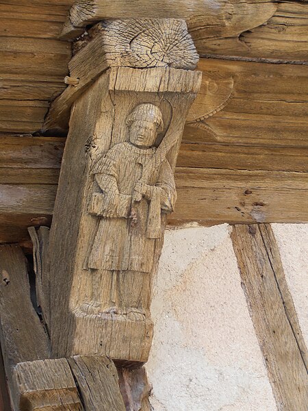 La maison à pans de bois, qui abrite le musée du patrimoine culturel de Saint-Julien-du-Sault, se situe au 10, rue de l'Hôtel-Dieu, près de la rue Saint-Antoine. L'édifice date du dernier quart du XVe siècle et est inscrit au titre des monuments historiques depuis 1929. Sa façade à colombages conserve un encorbellement soutenu par des poutres reposant sur deux corbeaux : celui de droite porte un bas-relief représentant saint Vincent en dalmatique, tenant d'une main une serpette et de l'autre un évangile, tandis que celui de gauche montre un blason effacé. Sur l'encorbellement figurent neuf têtes de loup engoulantes aux gueules ouvertes. Le poteau d'angle donnant sur la rue Saint-Antoine porte une statuette rustique de la Vierge à l'Enfant.