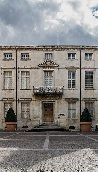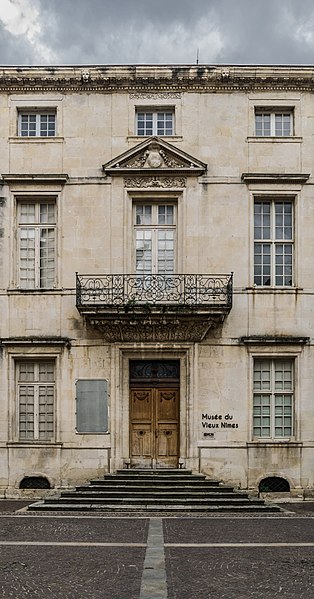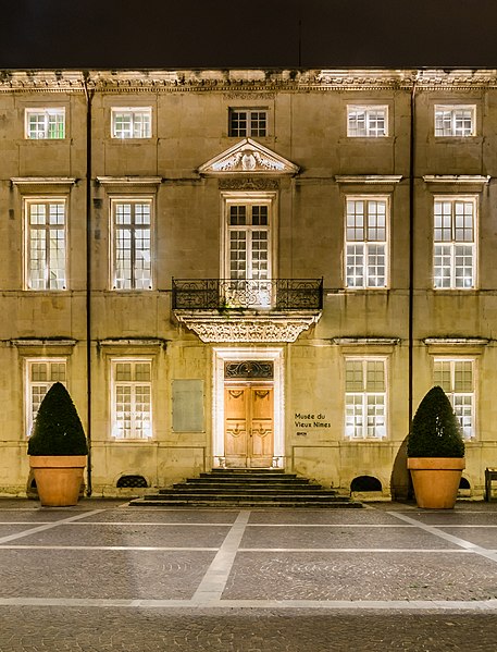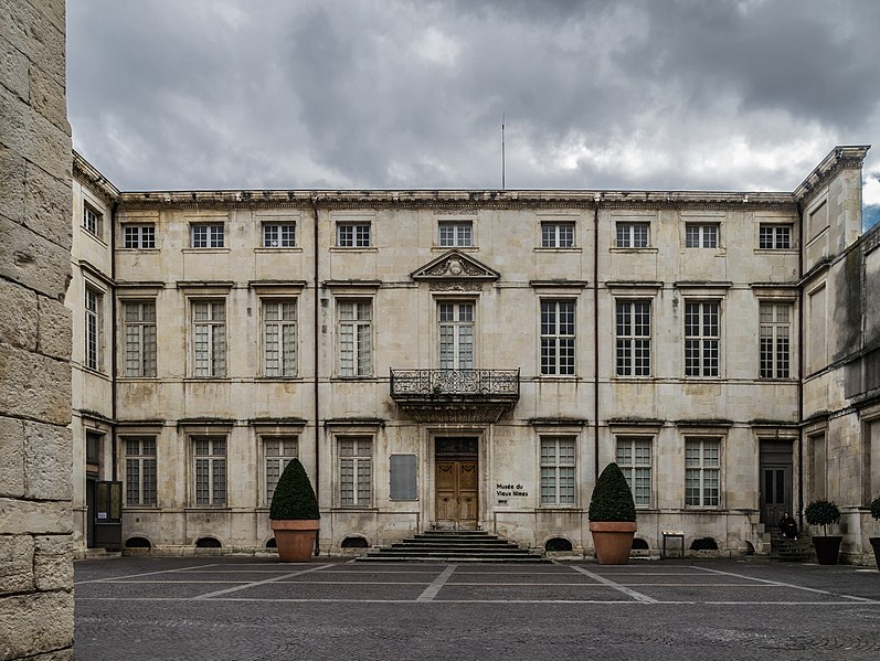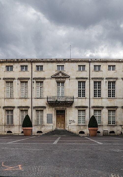 L'ancien palais épiscopal de Nîmes occupe un emplacement à l'ouest du quartier cathédral et a été reconstruit sur les vestiges d'un édifice antérieur bâti pour Guillaume Briçonnet (1496-1511) et détruit en 1567. La reconstruction engagée en 1682 sous Monseigneur Séguier a été conçue par Ponce Alexis de La Feuille, inspecteur des ouvrages du Canal du Midi, d'après des plans auxquels a également participé l'architecte Jacques Cubizol. Les élévations, commencées en 1683, empruntent plusieurs principes des hôtels parisiens, avec un corps de logis placé entre une cour d'honneur et un jardin ; La Feuille fit peindre en noir les tuiles pour évoquer l'aspect de l'ardoise et prévut un escalier ostentatoire, sans loggia. Des peintures exécutées en 1683-1685 dans le cabinet de l'évêque ont été attribuées aux frères François et Jean Gommeau. Les expertises de 1688 et 1707 notaient que le projet restait inachevé et que le premier étage n'était pas habitable. Les travaux se poursuivirent et furent menés à leur achèvement à partir de 1757 sous l'épiscopat de Charles-Prudent de Becdelièvre ; l'architecte Dardalhion (également nommé Dardailhon) et Antoine Fabre réalisèrent le grand escalier, rehaussèrent les façades latérales et aménagèrent les appartements du premier étage, ainsi qu'un portail fermant la cour d'honneur. Des aménagements supplémentaires eurent lieu au milieu du XIXe siècle ; à cette époque les menuiseries des fenêtres furent remplacées par des vitraux et la décoration intérieure date en grande partie du même siècle. En 1910, la liaison entre la chapelle épiscopale et le palais fut supprimée pour permettre la création de la rue Mathieu-Lacroix, et d'autres remaniements modifièrent la configuration du bâtiment. L'édifice comprend aujourd'hui un corps de logis central, une aile en retour à l'est et, à l'ouest, une façade factice simulant une aile occidentale symétrique ; les communs se trouvent à l'ouest du jardin. Les anciennes écuries, à l'est, ouvraient sur une cour qui communiquait par des passages avec la cour d'honneur, le jardin et la rue du Chapitre. Un sous-sol voûté occupe la surface du bâtiment. Les façades nord et sud présentent une travée centrale légèrement en avant et plus large que les autres, qui concentre toute l'ornementation sculptée. Des peintures anciennes ont été retrouvées dans le cabinet de l'évêque et peuvent être attribuées aux Gommeau. Le palais a été inscrit au titre des monuments historiques le 18 mars 1986. Aménagé à partir de 1920 en musée du Vieux Nîmes par l'érudit Henry Bauquier, l'ancien palais épiscopal abrite des collections sur la vie nîmoise depuis la fin du Moyen Âge, notamment des salons reconstituant l'univers des industriels du textile aux XVIIIe et XIXe siècles et une salle dédiée à la production de la serge de Nîmes (denim) sur plus de trois siècles ; le musée organise aussi des expositions temporaires. Parmi les conservateurs se succèdent Henry Bauquier, Victor Lassalle, Christiane Lassalle (années 1970-1986), Martine Nougarède (1986-2011), Aleth Jourdan (2011-2021) et, depuis 2021, Lisa Laborie-Barrière.