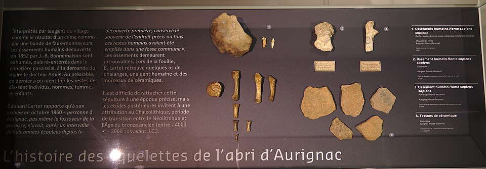 En 1852 Jean-Baptiste Bonnemaison retire des ossements dans un terrier et, en creusant, met au jour l'entrée d'un abri sous roche contenant une sépulture collective et des restes d'animaux éteints. En 1860 l'abri d'Aurignac fait l'objet de fouilles menées par Édouard Lartet. Après un ardent débat scientifique, en 1906 le terme Aurignacien devient éponyme pour désigner cette industrie préhistorique. La renommée internationale de l'Aurignacien conduit en 1969 à la création d'un musée dédié. À partir de 2006 est lancé le projet d'un nouveau musée forum et une construction neuve est édifiée. Le nouveau musée, implanté à l'entrée sud de la ville, est inauguré en 2015 avec une muséographie moderne et didactique.