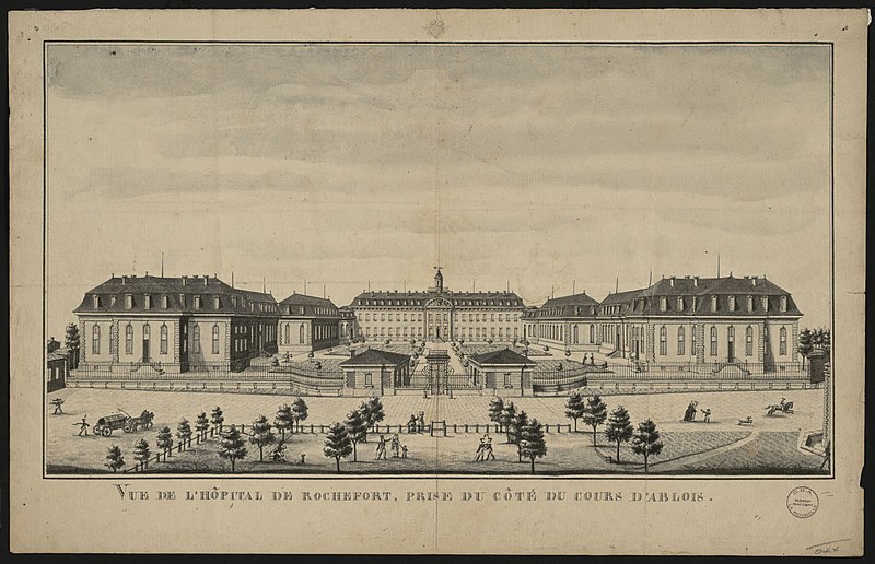Le pavillon sud‑ouest de l’hôpital de la Marine à Rochefort a abrité dès l’origine l’école de médecine navale, la première du genre inaugurée en 1722 et intégrée au premier hôpital installé sur le quai aux vivres. Son fondateur, Jean Cochon‑Dupuy, défendait la formation des chirurgiens au sein des hôpitaux maritimes pour qu’ils apprennent l’anatomie, la chirurgie, les maladies et la préparation et l’administration des remèdes. Le roi ordonne la construction d’un nouvel hôpital confiée à Pierre Toufaire, dont l’ouvrage est achevé en 1788 ; cet ensemble pavillonnaire, le premier de France, est conçu pour isoler et répartir les malades afin de limiter la contagion. Le pavillon de l’école conserve sa fonction pédagogique sur trois niveaux : le rez‑de‑chaussée réunit le hall d’entrée, la salle des actes et la salle du conseil, espaces de représentation et d’enseignement ; le premier étage accueille la bibliothèque et son fonds destiné à l’instruction théorique ; le second contient le musée et les collections servant aux démonstrations et à l’observation. L’établissement évolue au fil des siècles : la bibliothèque est officiellement instituée en 1798 alors qu’un fonds existait déjà, l’école devient annexe de Bordeaux en 1890 et cesse ses activités d’enseignement pour la médecine en 1963 et pour la pharmacie en 1964. L’hôpital fonctionne jusqu’en 1983 puis ses bâtiments sont vendus en 1989, tandis que le pavillon sud‑ouest reste propriété de la Marine puis est confié au musée national de la Marine et restauré dans son état du milieu du XIXe siècle. Ouvert au public en 1998 sous le nom d’Ancienne École de médecine navale, le musée présente la bibliothèque de 25 000 volumes, instruments médicaux, préparations anatomiques, cabinet d’histoire naturelle et collections rapportées par des expéditions. Le parc et les aménagements du pavillon témoignent d’un décor et d’un équipement datés de la fin du XVIIIe et du XIXe siècle. L’ensemble hospitalier, implanté sur la « Butte » hors des remparts, comprend plusieurs corps de bâtiment organisés en H, une chapelle en rotonde et un dispositif d’alimentation en eau mis en œuvre par Toufaire. Le site conserve des éléments remarquables de gros œuvre et de second œuvre, et il a fait l’objet de protections au titre des Monuments historiques (inscriptions de 1965 et 2015, inscription du pavillon de l’école en avril 2021 suivie d’un classement l’année suivante). Le jardin est accessible au public ; les bâtiments restent fermés en dehors du musée, sauf visites exceptionnelles. Une menace de fermeture du musée est évoquée dans les sources.
