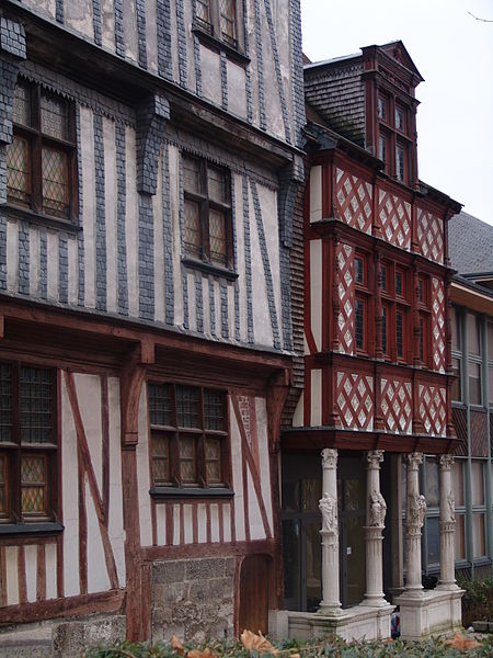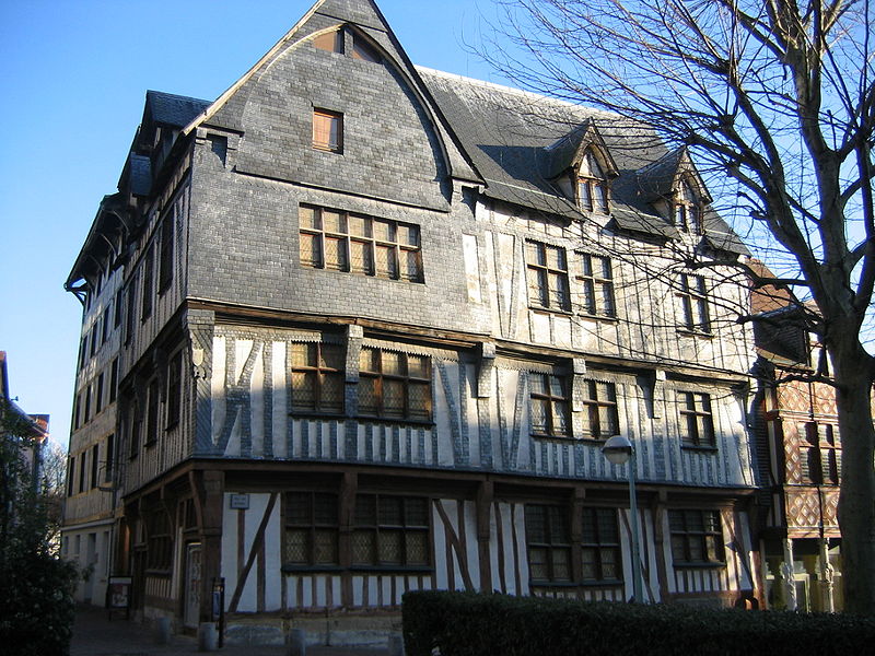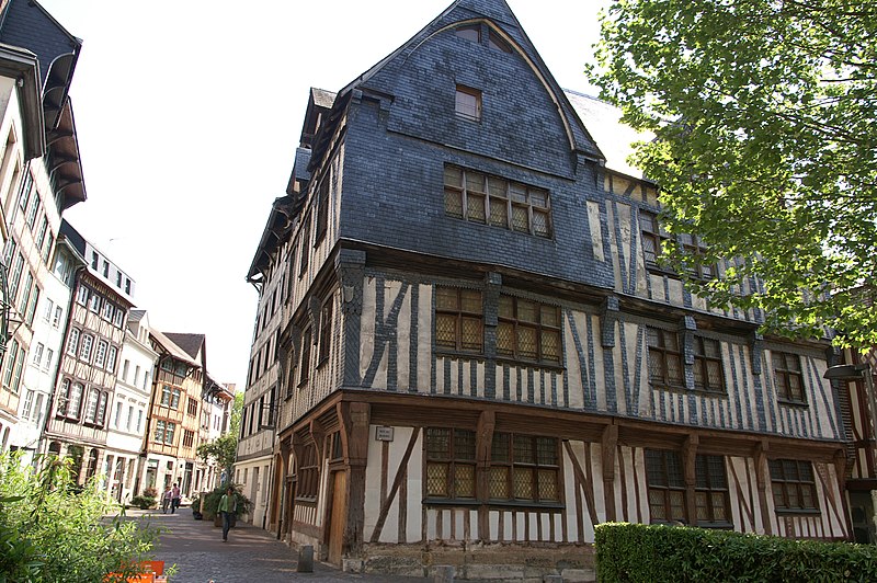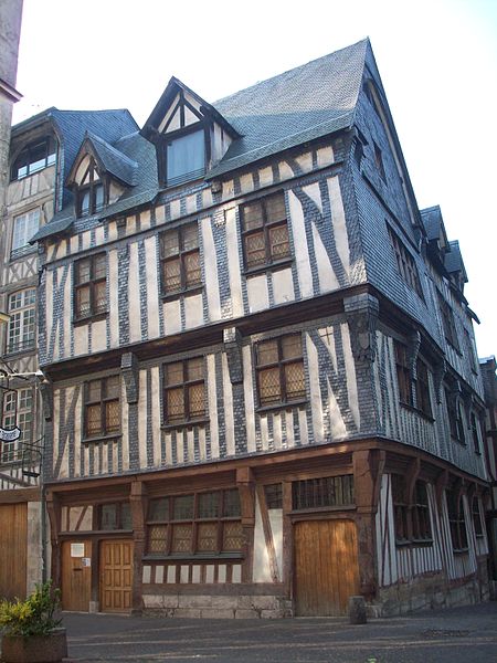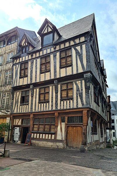 Installée à l’angle des rues Eau-de-Robec et du Ruissel, cette maison de maître appartenant à un riche drapier remonte vraisemblablement au dernier quart du XVe siècle. Elle présente deux étages en encorbellement, soutenus par de puissants poteaux, et un vaste comble en surcroît éclairé par des lucarnes. Sa façade est marquée par un essentage d’ardoises taillées de manière variée qui recouvre les colombages en pan de bois, ainsi que par un pignon ouest à ferme débordante reposant sur des doubles pigeâtres. Au début du XIXe siècle, l’édifice a été surnommé « maison des mariages » en raison du nombre d’unions qui s’y célébraient, parfois d’origine et de durée incertaines. Après restauration, la maison est devenue en 1984 le siège du Musée national de l’Éducation à Rouen.