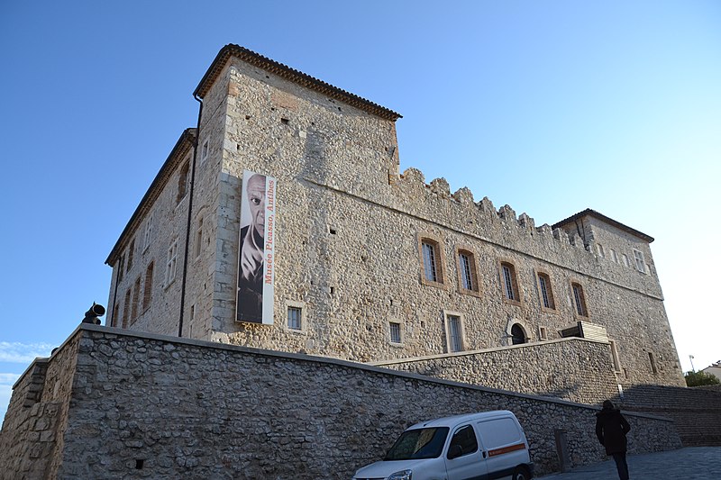 Le château Grimaldi, situé place Mariejol à Antibes, est classé au titre des monuments historiques depuis le 29 avril 1928 et abrite depuis 1966 le musée Picasso. Fondé sur l’ancienne acropole de la ville grecque d’Antipolis, il repose sur des fondations d’époque romaine et conserve des pans de façade romaine sur une hauteur de 3 à 5 mètres ; cette construction est attribuée au Ier siècle apr. J.-C. La tour du château, édifiée à la fin du XIe siècle comme celle de Cannes, témoigne du castrum Antipolitani : elle a une section carrée de 6,50 m de côté, une hauteur de 25 m et sa base comporte des pierres retaillées provenant de monuments romains. La porte primitive, surmontée d’un linteau monolithe supportant un tympan et un arc de décharge plein cintre, se trouvait en hauteur comme dans les donjons romans, l’accès à la salle du premier étage se faisant par une échelle mobile ; la salle du rez-de-chaussée était aveugle et accessible par une ouverture dans le plancher du premier étage, et l’on accédait au deuxième étage par un escalier sur corbeaux longeant les murs. La ville d’Antibes appartint à la famille de Grasse jusqu’au XIIIe siècle, puis aux évêques d’Antibes, ensuite à ceux de Grasse. Le château actuel a été édifié au XVe siècle et modifié au XVIIe siècle. En 1385, une branche de la famille génoise des Grimaldi occupa le château ; en 1608 le roi Henri IV acquit le fief pour la couronne de France, les Grimaldi s’installèrent au château voisin de Cagnes et l’ancienne forteresse d’Antibes servit successivement de demeure du gouverneur, d’hôtel de ville puis de caserne jusqu’en 1924. En 1925, sous l’impulsion de Romuald Dor de la Souchère, la commune racheta le château délabré et le transforma en musée Grimaldi. En 1946 Pablo Picasso fut invité par Romuald Dor de la Souchère à installer son atelier dans le château ; il y séjourna de septembre à novembre, y réalisa de nombreuses œuvres et y laissa une partie de ses peintures et dessins en dépôt. L’année suivante fut inaugurée une salle consacrée à Picasso et, en 1948, s’ajoutèrent notamment 78 céramiques créées par l’artiste à Vallauris. En 1957 Picasso reçut le titre de « Citoyen d’honneur de la ville d’Antibes ». En décembre 1966 le château Grimaldi fut officiellement transformé en musée Picasso et Romuald Dor de la Souchère en devint le premier conservateur. La collection s’est enrichie au fil des ans par la dation de Jacqueline Picasso en 1990 ainsi que par divers achats et acquisitions, rassemblant environ 245 œuvres de Picasso. Le fonds du musée comprend également des peintures de Nicolas de Staël, Fernand Léger et Hans Hartung, des dessins de Kostia Terechkovitch, des gravures de Paul Leuquet et Claude Raimbourg, ainsi que des sculptures de Germaine Richier et Joan Miró. Le musée a été fermé en mars 2006 pour une rénovation conduite par l’architecte en chef des Monuments historiques Pierre-Antoine Gatier et a rouvert ses portes le 20 juillet 2008.