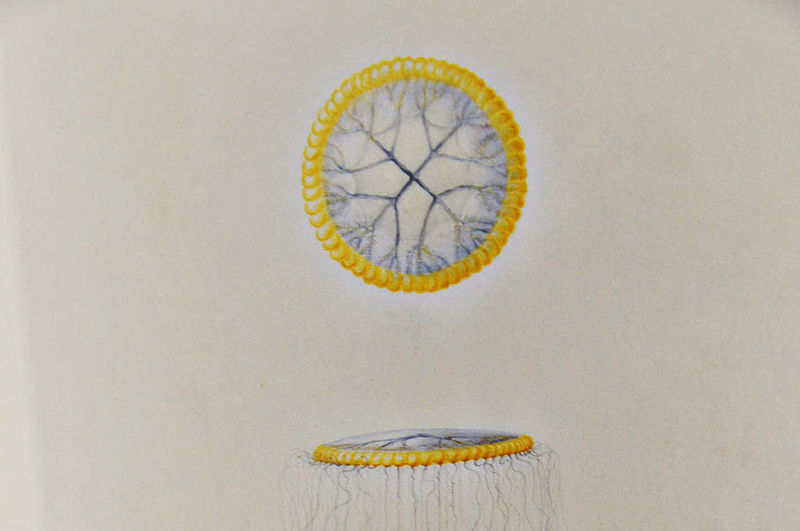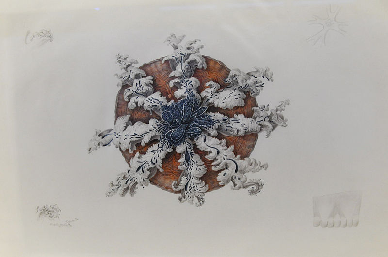 Le bâtiment présente une architecture classique en pierres de taille : deux corps latéraux encadrent un corps central doté d'un escalier monumental orné d'un fronton triangulaire sculpté. Parmi les pièces exposées figurent notamment les squelettes d'un dauphin et d'un Globicephala melas, des spécimens de lion et de rhinocéros, des masques et une pièce référencée comme "pèle", ainsi qu'un dessin de méduse réalisé par Lesueur.