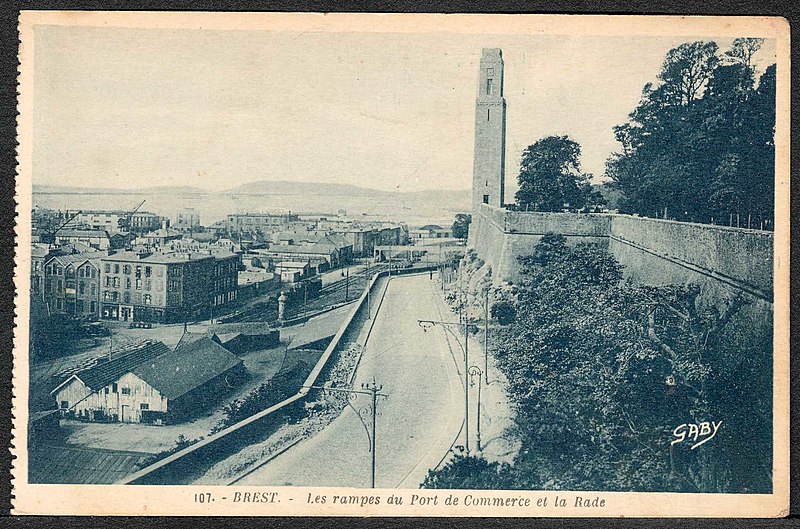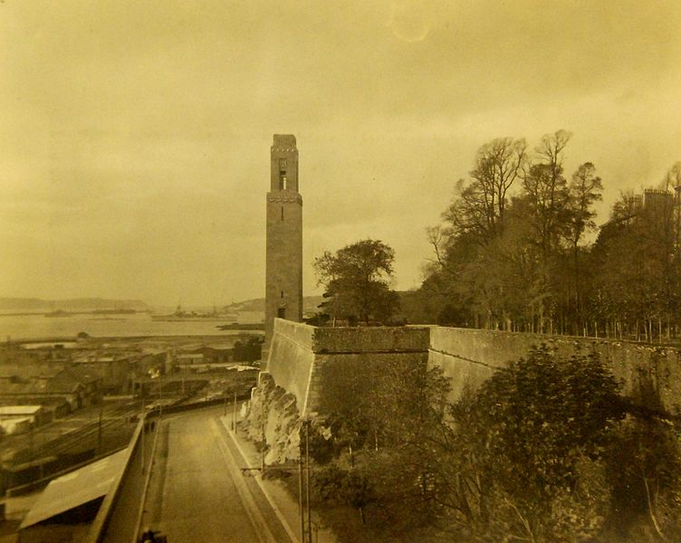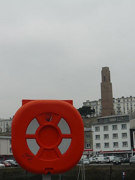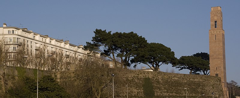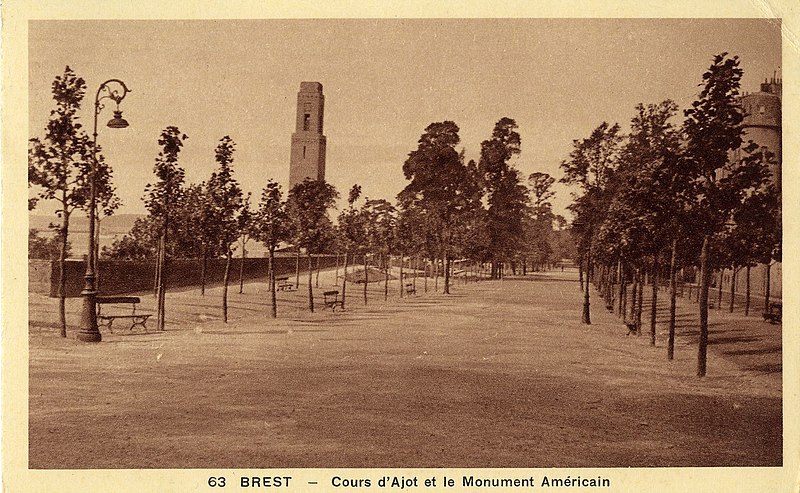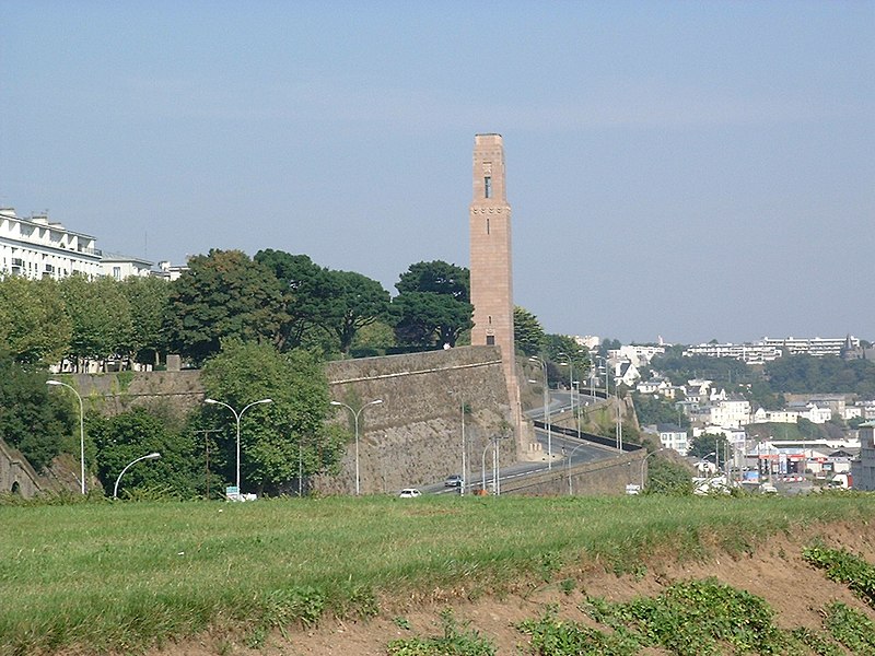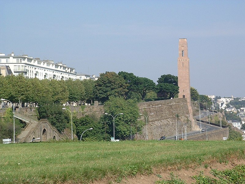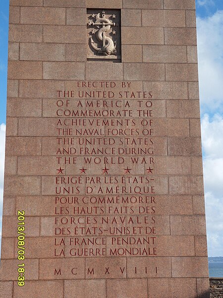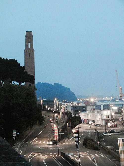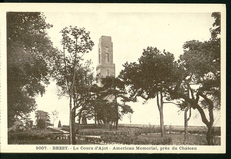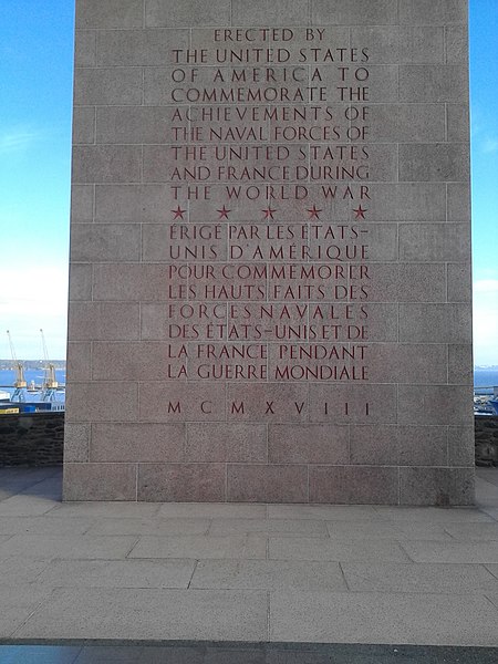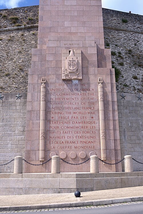 Le Naval Monument de Brest, plus couramment appelé la "Tour rose", est un mémorial érigé à l'initiative de l'American Battle Monuments Commission (ABMC), créée en 1923 par le Congrès des États-Unis pour gérer cimetières et mémoriaux américains à l'étranger. Il commémore l'action de la marine américaine dans les eaux européennes pendant la Première Guerre mondiale, depuis l'entrée en guerre des États-Unis le 6 avril 1917 et la constitution de l'American Expeditionary Force (AEF) jusqu'au rapatriement des derniers soldats américains en 1919. Brest fut choisi en raison de son rôle stratégique : quartier général des forces navales et aéronavales américaines en Europe, principal port d'attache des navires de l'US Navy et lieu majeur de débarquement et de réembarquement des troupes. Le paquebot SS Léviathan desservait exclusivement Brest et, sur les quelque deux millions de militaires de l'AEF, plus de 700 000 arrivèrent par ce port ; c'est aussi par Brest que le président Woodrow Wilson arriva en Europe en 1919. Le monument, conçu par l'architecte Howard Van Doren Shaw et réalisé après son décès par son associé Ralph Milman, fut construit entre 1930 et 1932 et inauguré en 1937. Les bas-reliefs aux motifs maritimes sont l'œuvre du sculpteur américain John Storrs. Pendant l'Occupation, la tour fut complètement détruite par les Allemands le 4 juillet 1941 et un bunker fut édifié à son emplacement. Les autorités allemandes imputèrent la destruction à un raid de la Royal Air Force, mais une enquête américaine releva des témoignages crédibles faisant état de préparatifs allemands en vue d'une démolition suivie d'un raid nocturne de la RAF. Après la guerre, Ralph Milman reconstruisit la tour à l'identique en 1958, légèrement décalée par rapport à son emplacement initial sur le bunker, et elle fut inaugurée le 16 juillet 1960 en présence de Michel Debré. Le monument fit l'objet d'une rénovation importante à l'été 2015, comprenant nettoyage des pierres, rejointoiement, entretien de la toiture et mise en conformité du paratonnerre, pour un montant de 200 000 €. Il est inscrit au titre des monuments historiques depuis le 27 juillet 2015 ; l'inscription couvre la tour et son soubassement, l'esplanade, le jardin et le bunker. Implanté à mi-cours Dajot, à flanc du rempart dominant le port de commerce, le mémorial se présente comme une tour carrée en granite rose d'une hauteur de 44 mètres depuis la plus basse terrasse (30,5 mètres depuis le cours). Devant la tour se trouvent une esplanade et un jardin public ; l'ensemble appartient au gouvernement fédéral des États-Unis mais ne bénéficie pas d'extraterritorialité. À la base de la tour, sur les côtés nord-ouest et sud-est, une inscription en anglais et en français rend hommage aux hauts faits des forces navales des États-Unis et de la France pendant la guerre mondiale. Les quatre faces de la tour sont ornées de bas-reliefs maritimes réalisés par John Storrs. L'intérieur, fermé au public, comporte un escalier menant à une petite plateforme située à une trentaine de mètres et abrite notamment une lettre d'Eisenhower rédigée alors qu'il était président des États-Unis, déposée lors de l'inauguration de la reconstruction. Le mémorial est la propriété du gouvernement fédéral américain, géré par l'ABMC et entretenu par le cimetière militaire américain de Saint-James.