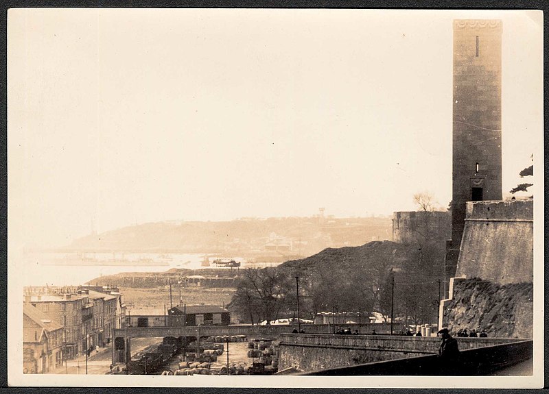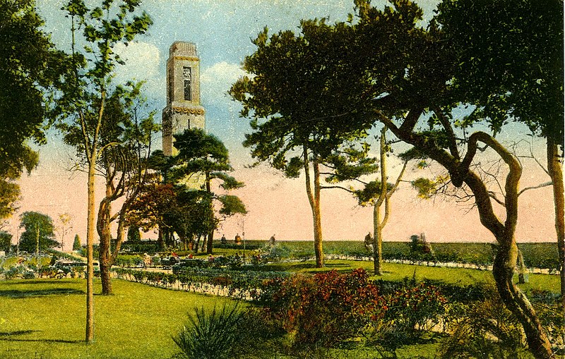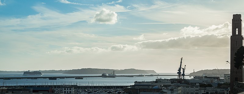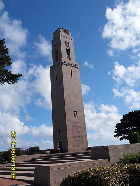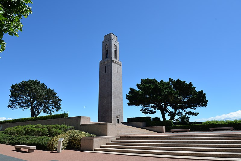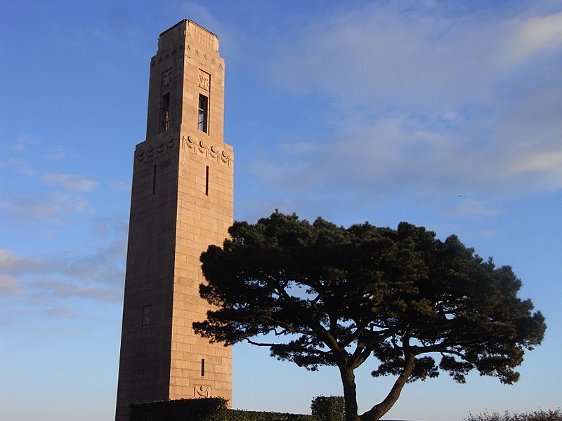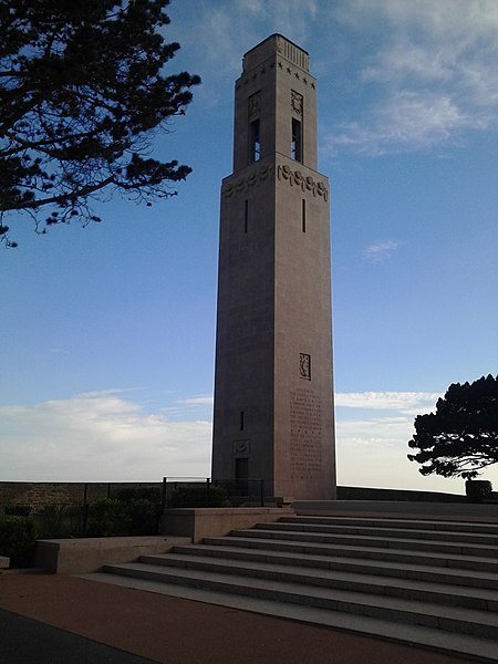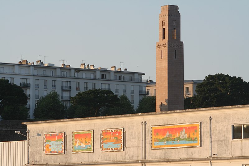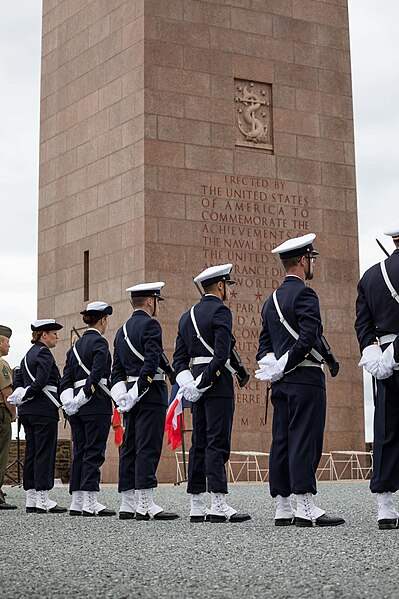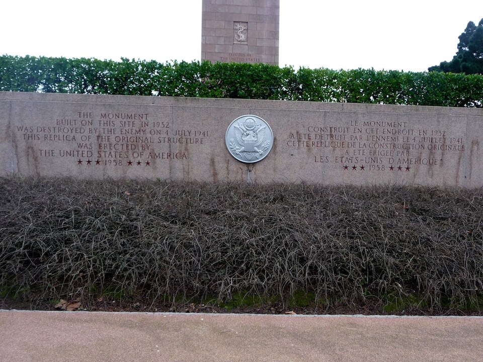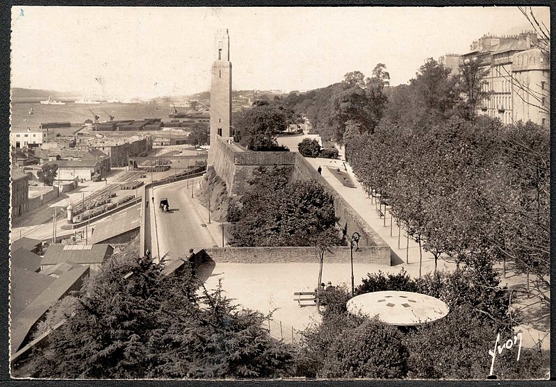 Le Naval Monument de Brest, plus couramment appelé la "Tour rose", est un mémorial érigé à l'initiative de l'American Battle Monuments Commission (ABMC), créée en 1923 par le Congrès des États-Unis pour gérer cimetières et mémoriaux américains à l'étranger. Il commémore l'action de la marine américaine dans les eaux européennes pendant la Première Guerre mondiale, depuis l'entrée en guerre des États-Unis le 6 avril 1917 et la constitution de l'American Expeditionary Force (AEF) jusqu'au rapatriement des derniers soldats américains en 1919. Brest fut choisi en raison de son rôle stratégique : quartier général des forces navales et aéronavales américaines en Europe, principal port d'attache des navires de l'US Navy et lieu majeur de débarquement et de réembarquement des troupes. Le paquebot SS Léviathan desservait exclusivement Brest et, sur les quelque deux millions de militaires de l'AEF, plus de 700 000 arrivèrent par ce port ; c'est aussi par Brest que le président Woodrow Wilson arriva en Europe en 1919. Le monument, conçu par l'architecte Howard Van Doren Shaw et réalisé après son décès par son associé Ralph Milman, fut construit entre 1930 et 1932 et inauguré en 1937. Les bas-reliefs aux motifs maritimes sont l'œuvre du sculpteur américain John Storrs. Pendant l'Occupation, la tour fut complètement détruite par les Allemands le 4 juillet 1941 et un bunker fut édifié à son emplacement. Les autorités allemandes imputèrent la destruction à un raid de la Royal Air Force, mais une enquête américaine releva des témoignages crédibles faisant état de préparatifs allemands en vue d'une démolition suivie d'un raid nocturne de la RAF. Après la guerre, Ralph Milman reconstruisit la tour à l'identique en 1958, légèrement décalée par rapport à son emplacement initial sur le bunker, et elle fut inaugurée le 16 juillet 1960 en présence de Michel Debré. Le monument fit l'objet d'une rénovation importante à l'été 2015, comprenant nettoyage des pierres, rejointoiement, entretien de la toiture et mise en conformité du paratonnerre, pour un montant de 200 000 €. Il est inscrit au titre des monuments historiques depuis le 27 juillet 2015 ; l'inscription couvre la tour et son soubassement, l'esplanade, le jardin et le bunker. Implanté à mi-cours Dajot, à flanc du rempart dominant le port de commerce, le mémorial se présente comme une tour carrée en granite rose d'une hauteur de 44 mètres depuis la plus basse terrasse (30,5 mètres depuis le cours). Devant la tour se trouvent une esplanade et un jardin public ; l'ensemble appartient au gouvernement fédéral des États-Unis mais ne bénéficie pas d'extraterritorialité. À la base de la tour, sur les côtés nord-ouest et sud-est, une inscription en anglais et en français rend hommage aux hauts faits des forces navales des États-Unis et de la France pendant la guerre mondiale. Les quatre faces de la tour sont ornées de bas-reliefs maritimes réalisés par John Storrs. L'intérieur, fermé au public, comporte un escalier menant à une petite plateforme située à une trentaine de mètres et abrite notamment une lettre d'Eisenhower rédigée alors qu'il était président des États-Unis, déposée lors de l'inauguration de la reconstruction. Le mémorial est la propriété du gouvernement fédéral américain, géré par l'ABMC et entretenu par le cimetière militaire américain de Saint-James.