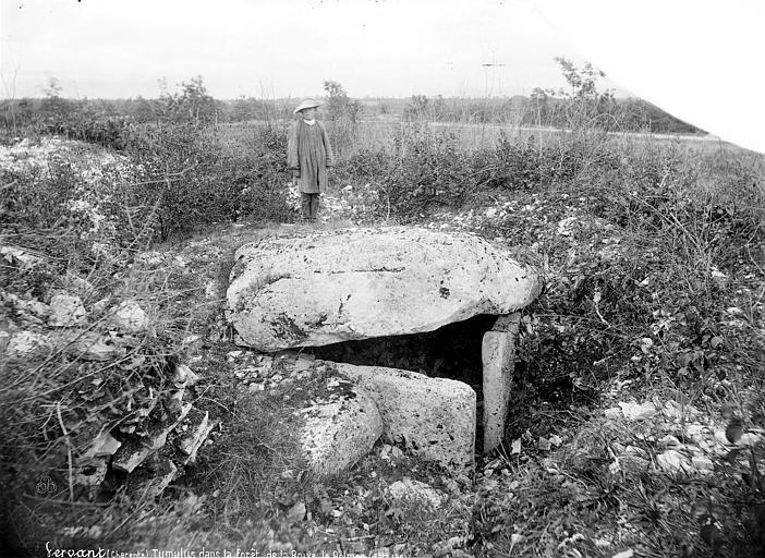 Le tumulus A, situé à Cellettes et appelé Gros‑Dognon, a été presque entièrement détruit pour fournir des pierres à un chemin. Il ne subsiste qu'une moitié de table de couverture, bloc parallélépipédique d'environ 4,10 m sur 1,60 m et d'une épaisseur de 0,70 à 0,95 m, estimé à 15 tonnes ; cette Pierre du sacrifice porte une rainure en V attribuée par la tradition à des rites mais qui est en réalité une marque de carrier liée au débitage. D'après la table restante, la chambre aurait été carrée, d'environ 3,30 m de côté ; un orthostat sculpté d'une crosse, caractéristique du type angoumoisin, a été retiré et réutilisé localement, mais des moulages de cette dalle sont conservés au musée Sainte‑Croix de Poitiers et au musée des tumulus de Bougon.