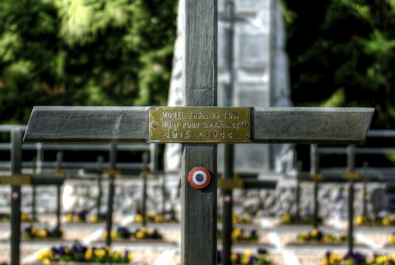 La nécropole nationale des Glières, cimetière militaire et mémorial, a été inaugurée en avril 1944 pour commémorer les combattants, principalement morts lors des combats des Glières. Elle comprend 105 tombes surmontées de croix en bronze, dont 88 appartiennent à des maquisards du plateau ; des croix en bois qui existaient initialement ont été retirées entre 1960 et 1963. Après les combats, l’occupant allemand proposait une fosse commune ; le maire de Thônes s’y opposa et le champ dit de Morette fut choisi pour des inhumations dignes. Les croix en bronze ont été offertes par la Fonderie Paccard. Le département de la Haute‑Savoie a été libéré en août 1944 et, le 5 novembre 1944, le général de Gaulle est venu rendre hommage aux combattants sur le site. La nécropole est aujourd’hui gérée par l’Office national des anciens combattants et victimes de guerre (ONACVG) et le ministère des Armées ; elle a été inscrite au titre des monuments historiques par arrêté du 23 mars 2015 et bénéficie du label « Patrimoine du XXe siècle ».