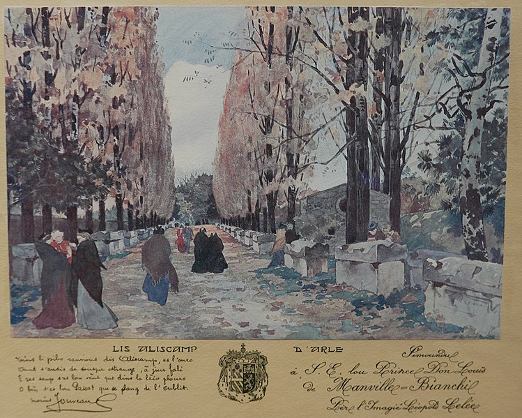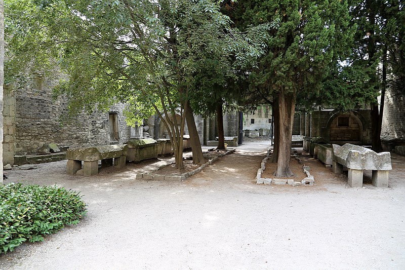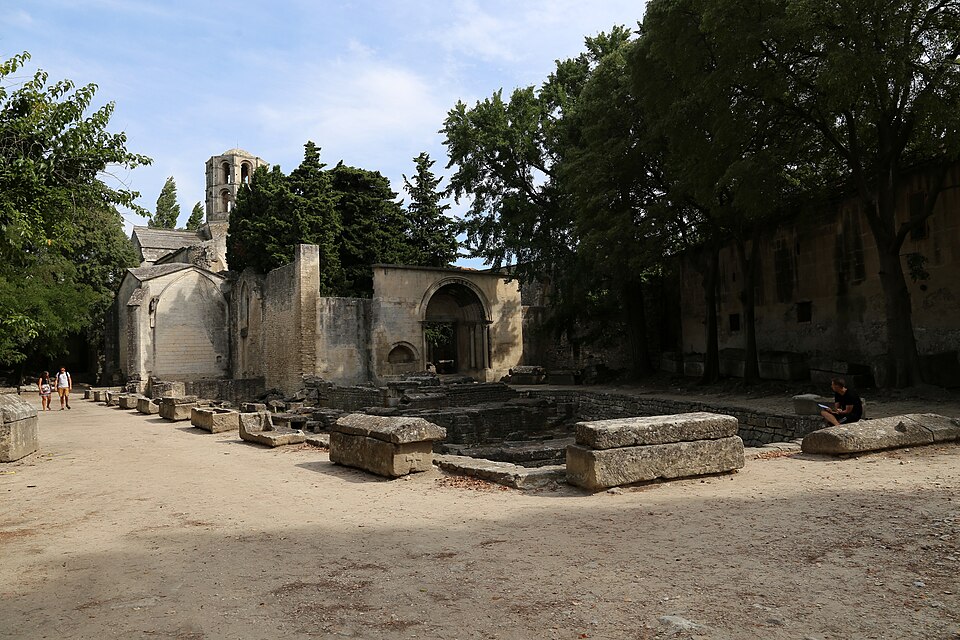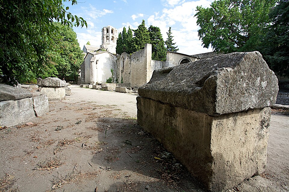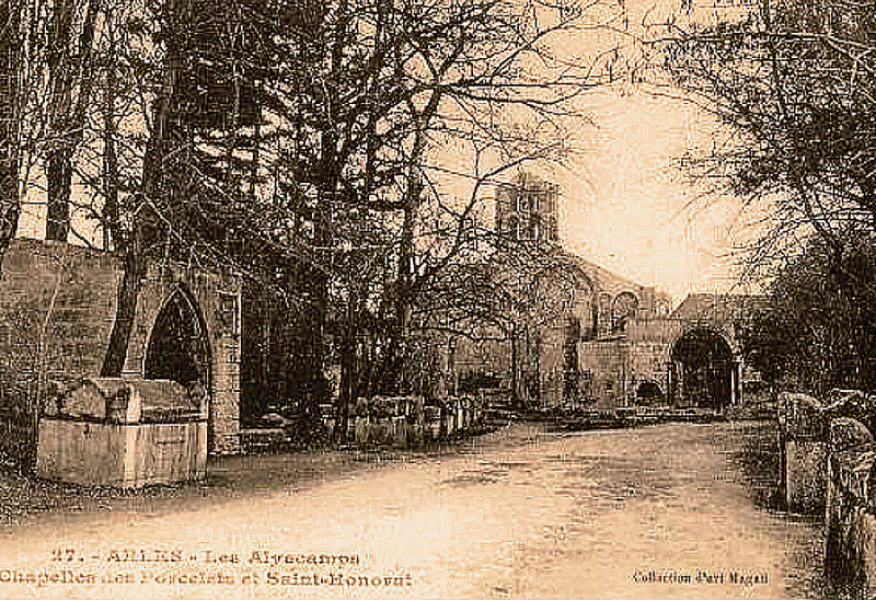De l'Antiquité au Moyen Âge, les Alyscamps furent successivement une nécropole païenne puis chrétienne installée à l'entrée sud-est de la cité, le long de la via Aurelia, en dehors de l'enceinte comme la plupart des nécropoles romaines, et ils comprenaient de très nombreux sarcophages. La célébrité du lieu remonte à la fin du IVe siècle avec le martyre de Genest, saint arlésien décapité en 303, et, au fil des siècles, de nombreuses personnes y voulurent être enterrées, y compris des évêques d'Arles. Des défunts étaient transportés par le Rhône sur de petits bateaux pour y être inhumés, une somme d'argent étant versée aux Arlésiens qui accomplissaient les sépultures.