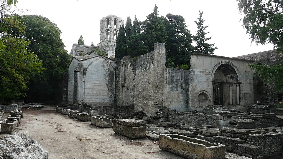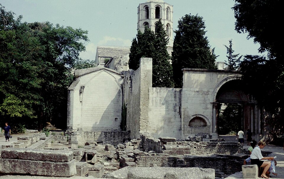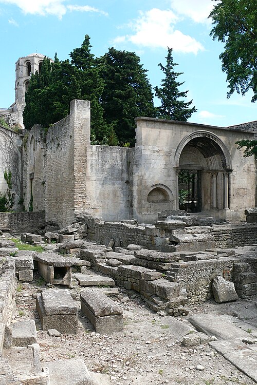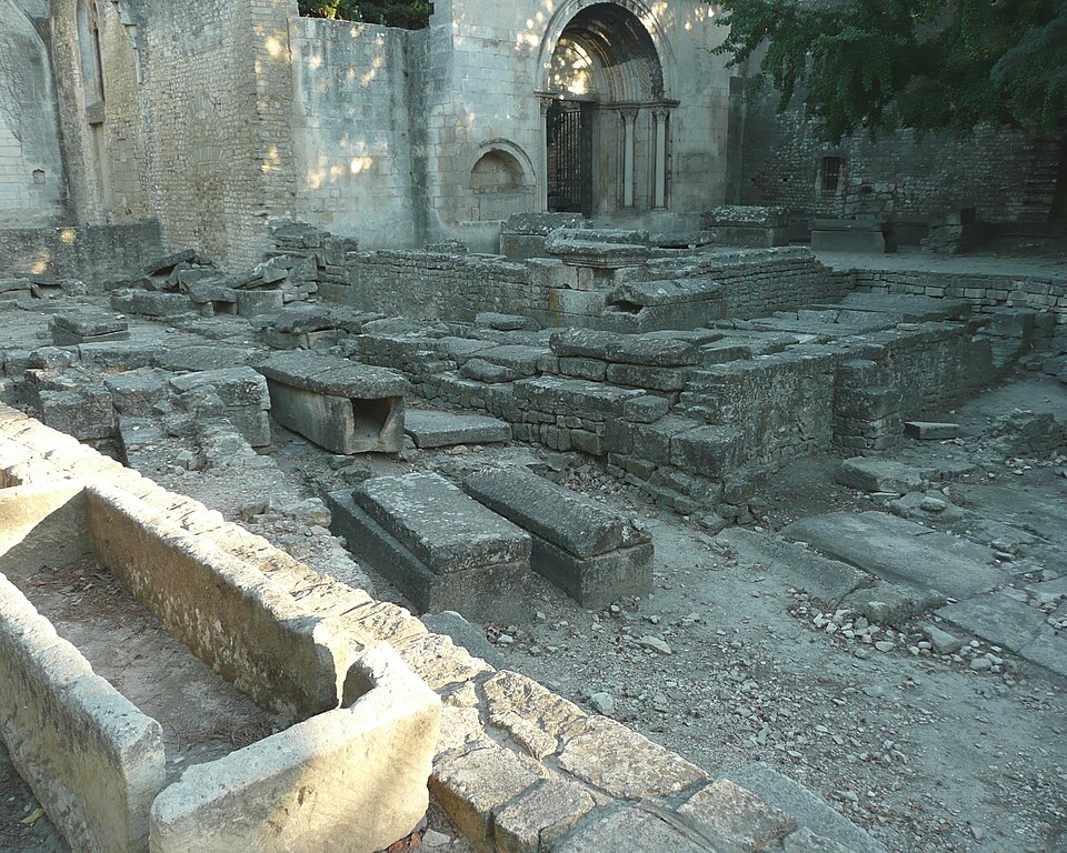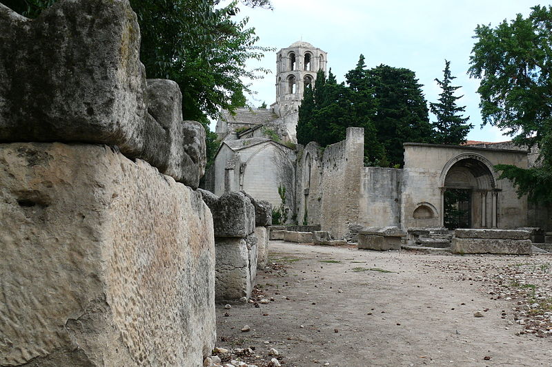 Entre les XIe et XIIIe siècles, le cimetière, connu de toute la chrétienté, s'enrichit de plusieurs églises et une collégiale fut établie aux Alyscamps au XIe siècle. Vers 1035, l'archevêque Raimbaud remit l'ancienne église Saint-Genès et ses dépendances aux moines de Saint-Victor de Marseille contre le cens d'une livre d'encens à fournir le jour de Saint-Trophime. Les Alyscamps devinrent alors une étape du pèlerinage de Compostelle pour les pèlerins provençaux, mais la translation des reliques de saint Trophime à la cathédrale Saint-Étienne en 1152 en diminua une partie du prestige.