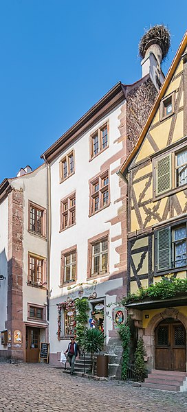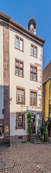 La maison dite Nid de Cigognes, située 16 rue du Général‑de‑Gaulle à Riquewihr (Haut‑Rhin), est un édifice complexe d'époques différentes, connu sous le nom Au Nid de cigognes depuis le XVIe siècle. L'édifice est inscrit au titre des monuments historiques depuis 1930. Le corps de logis a sans doute été partiellement reconstruit en 1535 pour Wilhelm Bart; ses initiales, un écu portant sa marque et le millésime MDXXXV sont gravés sur une fenêtre. F. Zeyer signale la date 1521 sur un pilier, information qui n'a pas été confirmée sur place. De la construction antérieure subsisteraient une portion du gros‑œuvre et une fenêtre gothique située au‑dessus de la baie datée de 1535. La maison a été remaniée en 1662, date portée sur un poteau du cellier, et l'escalier actuel en vis a été installé l'année suivante par un propriétaire dont les initiales H I figurent sur l'escalier. L'avant‑corps nord‑est côté cour et les coursières ont probablement été ajoutés au XVIIe siècle, et la dépendance en fond de cour peut dater du XVIe ou du XVIIe siècle. En 1853 la façade sur rue a été restaurée et remaniée, entraînant la destruction de l'oriel ou logette qui l'ornait. Une nouvelle rénovation a été conduite en 1908 par l'architecte colmarien Edouard Spittler. D'après des vues anciennes, le corps de passage a successivement eu deux étages, puis un étage avec toit à versants brisés; il présente actuellement un étage avec toit à longs pans. La dépendance a été aménagée en restaurant, tandis que le corps de logis abrite un commerce au sous‑sol et le musée de l'association des "Amis de Hansi" au rez‑de‑chaussée et aux étages.
