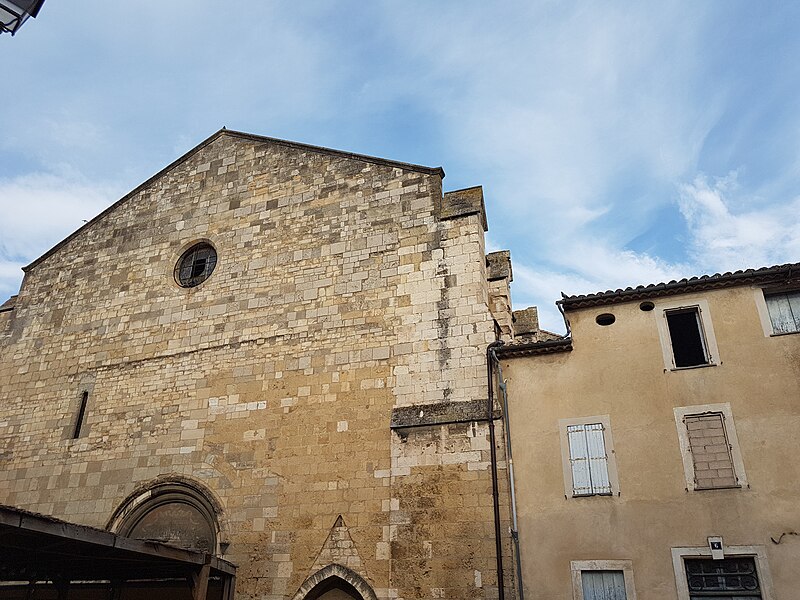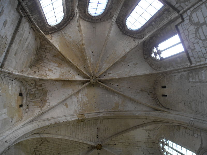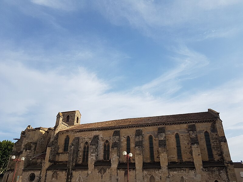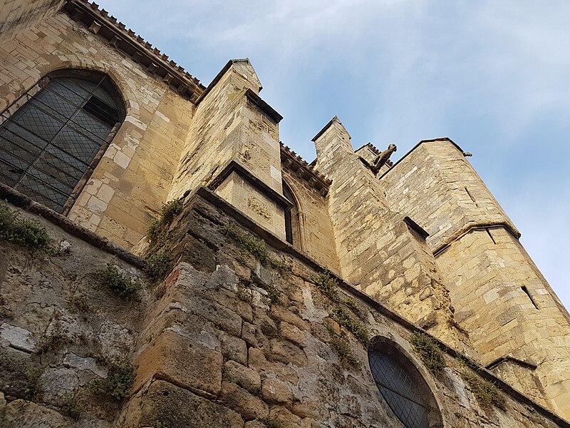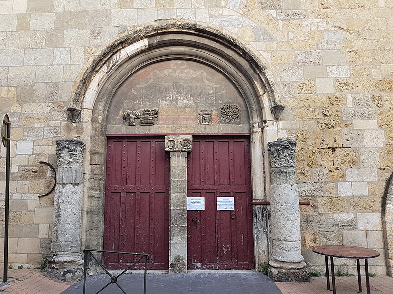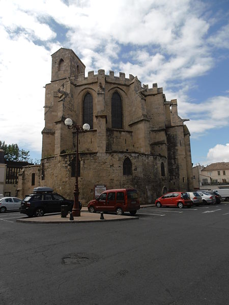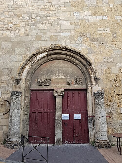 Architecturalement, l'église combine des éléments romans et gothiques. Elle présente une vaste nef unique, sans bas-côtés, divisée en travées et couverte d'une charpente traditionnelle ; le chevet et le chœur sont voûtés. Des vestiges romans subsistent, comme une archivolte et deux colonnes dans la chapelle de droite, probablement issus de l'édifice primitif. La charpente de la nef, dépourvue d'entrait et d'arbalétrier, repose sur des pannes portées par des arcs doubleaux et abrite un plafond à deux rampants, voligé entre les pannes, dont certains fragments conservent une décoration peinte. Le chevet, accolé aux remparts, adopte un plan polygonal et montre que l'abside était en contact avec la fortification ; son couronnement crénelé est encore en grande partie intact et pouvait contribuer à la défense du bourg. Le triforium est très ajouré et les points d'appui paraissent délicats, mais un large formeret, tant à l'extérieur qu'à l'intérieur, reporte les charges sur de puissants contreforts. Une galerie ajoutée au XIVe siècle traverse les doubleaux et communique avec le triforium au-dessus des chapelles du chœur. L'abside à pans est voûtée d'ogives retombant sur des consoles richement sculptées. Parmi les parties les plus anciennes figurent une baie en plein cintre du mur occidental et le portail méridional (fin du XIIe siècle ?), tandis que le flanc sud porte une tour avec tourelle pentagonale. L'édifice conserve divers éléments remarquables, dont un portail roman et une stèle datée du VIIe siècle, qui ont nourri son intérêt archéologique et patrimonial.