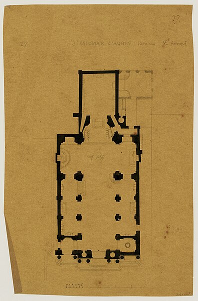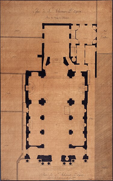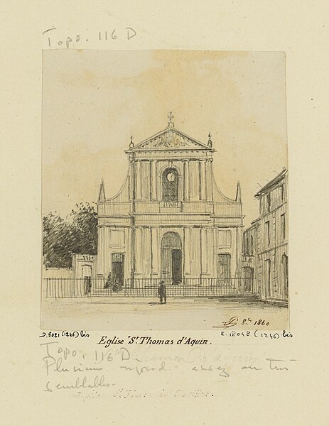 Le couvent Saint-Thomas-d'Aquin a été fondé en 1632 par Françoise de Saliné et servait de noviciat capable d'accueillir cinquante frères ; sa bibliothèque comptait jusqu'à 14 000 ouvrages. Les frères dominicains, installés sur les terres de l'abbaye royale de Saint-Germain-des-Prés, ont édifié l'ensemble conventuel entre 1682 et 1740 ; la chapelle, devenue l'actuelle église Saint-Thomas-d'Aquin, a été achevée en 1770 d'après les plans de Pierre Bullet. Le cloître et les ailes ont connu plusieurs campagnes de travaux : l'église et l'aile nord ont été prioritaires, le pavillon des infirmeries a été construit en 1728-1729, d'autres ailes ont suivi et, aux XVIIIe et XIXe siècles, le niveau des bâtiments a été surélevé.