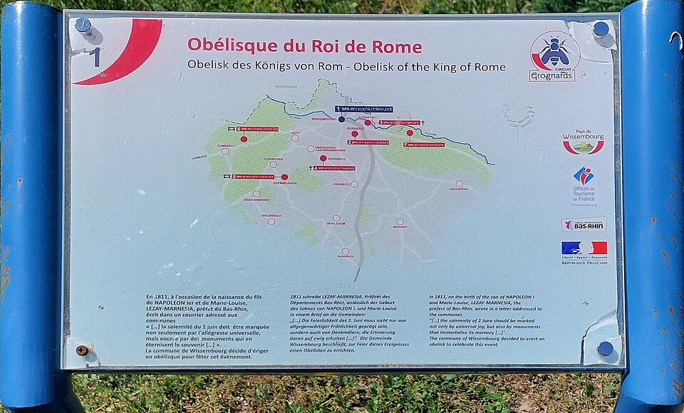 L'obélisque du roi de Rome, situé au lieu-dit Wuerzenberg, rue du Roi-de-Rome à Wissembourg (Bas-Rhin), commémore la naissance du roi de Rome, Napoléon II, le 20 mars 1811. Il fut érigé à la demande du préfet Adrien de Lezay-Marnésia, sous la municipalité du maire Ossel, et placé dans une pépinière au sud de Wissembourg. La réalisation a été assurée par les maçons municipaux Regulato, Markgraf et Munzer. L'édifice a fait l'objet d'une restauration en 1976, réalisée avec la participation des Amitiés internationales napoléoniennes. Il est inscrit au titre des monuments historiques depuis 1986. L'obélisque figure parmi les monuments historiques de Wissembourg et du Bas-Rhin; des illustrations et documents en sont consultables sur Wikimedia Commons et les portails consacrés au Bas-Rhin et aux monuments historiques français.